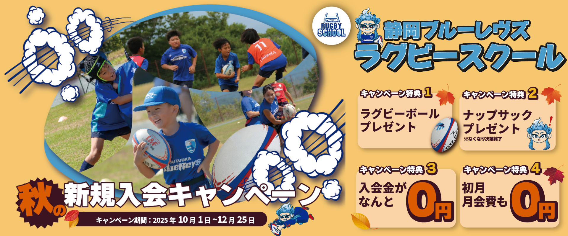 入会金(入会時のみ) 10,000円 ※兄弟・姉妹・保護者が入会している場合、2人目以降半額。 ※入会特典としてオリジナルラグビーボールプレゼント |