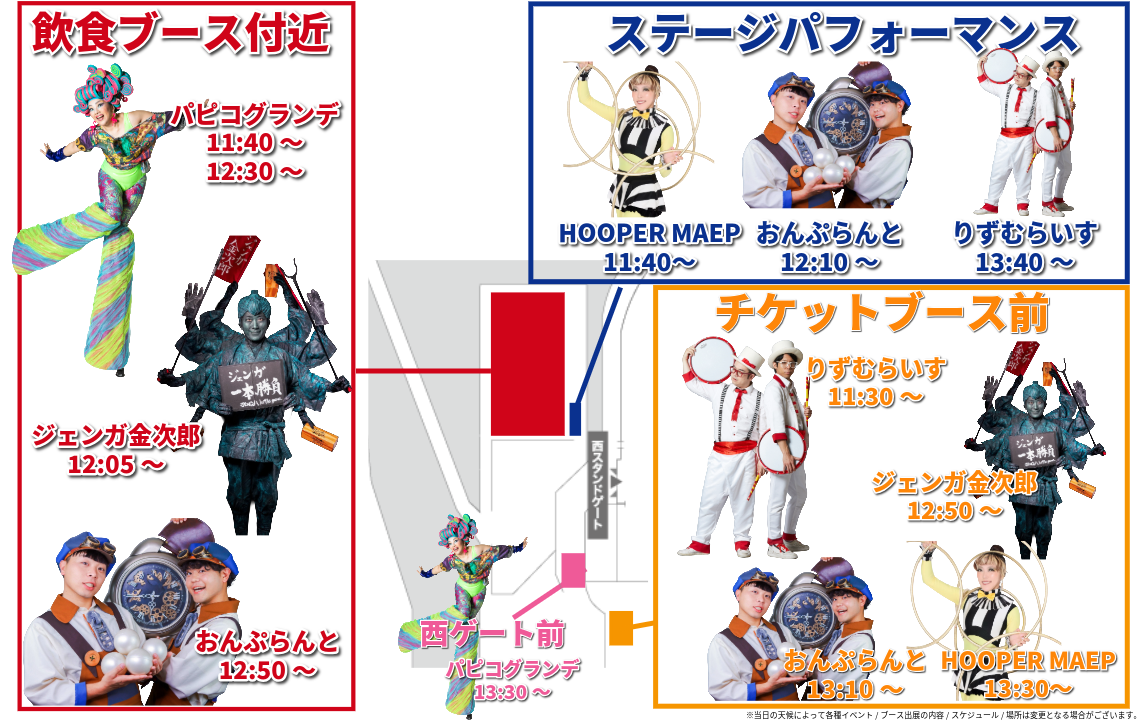 パフォーマンス時間: 試合前 14:00頃 / ハーフタイム