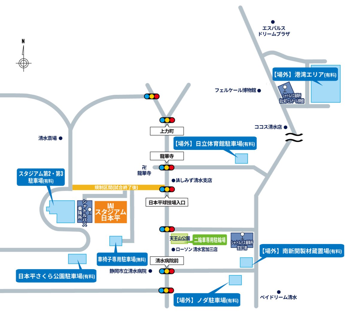 ・清水港湾エリア ※「波止場フェルケール博物館」バス停よりスタジアム行の有料シャトルバスをご利用ください