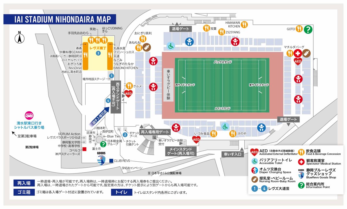 静岡定番グルメや静岡県内の人気店の味など、多彩なフードやドリンクが勢ぞろい!お気に入りを見つけて、いっぱい食べて、飲んで、静岡ブルーレヴズの応援に備えよう!!