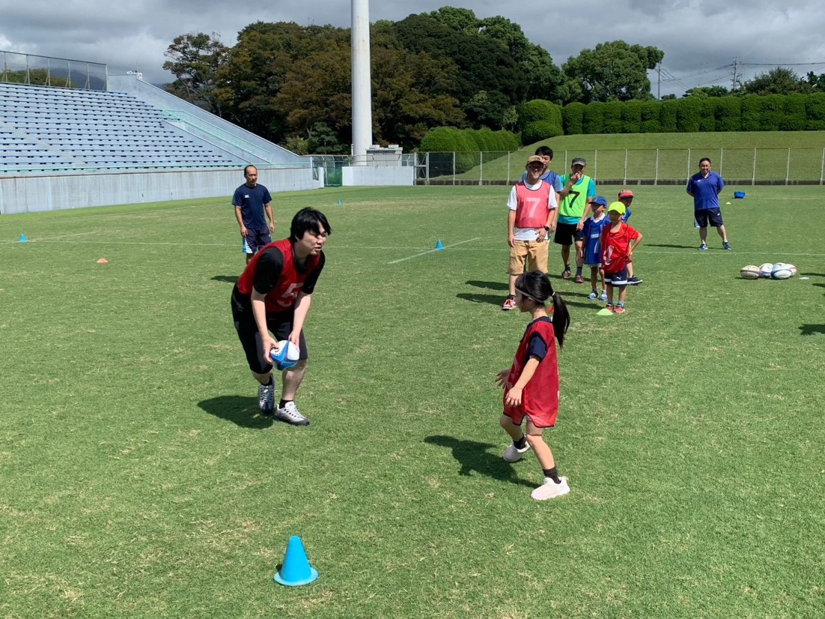 9月18日に草薙球技場で行われた「初心者ラグビー体験」へ育成普及担当の小池、久保が参加しました。