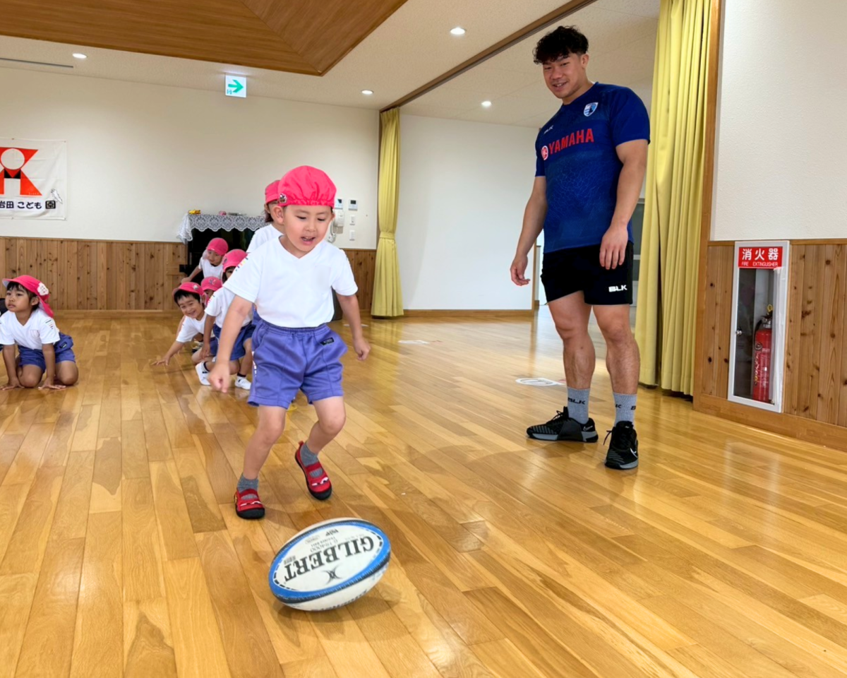 あいにくの雨でしたが、室内でもみんな元気にラグビー体験をしてくれました!今日の活動を通してラグビーに興味を持ってくたら嬉しいです!