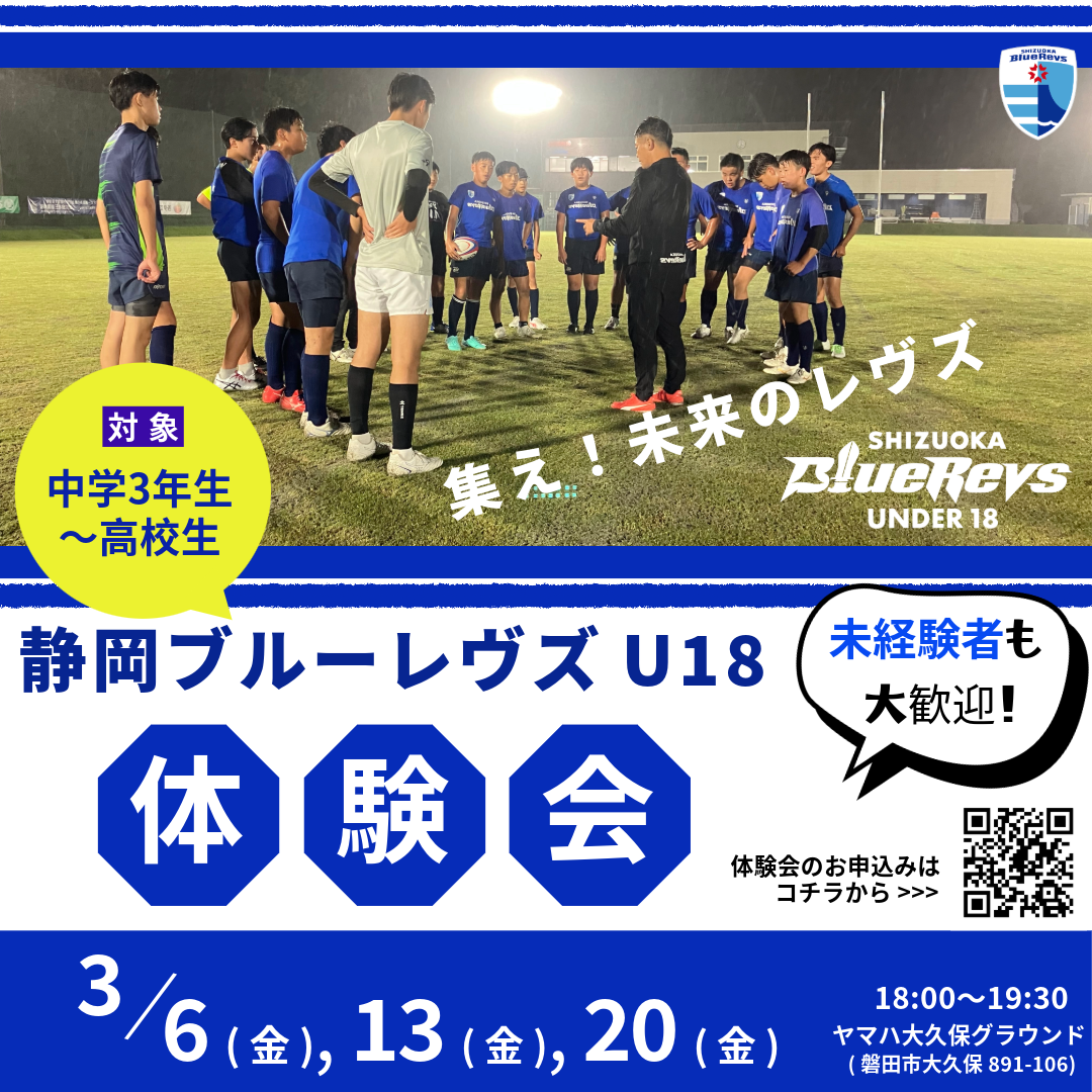 この度、静岡ブルーレヴズ株式会社はリーグワンでは初の試みとして、高校生世代を対象としたユースチーム<静岡ブルーレヴズU18>を設立いたします。<静岡ブルーレヴズU18>は今年10月から、中学3年生および高校生を対象とした体験会を皮切りに活動を始め、2026年4月から本格始動いたします。