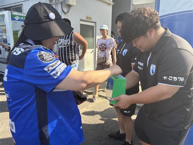 静岡ブルーレヴズでは、9月27日(土)に以下の通り支援募金活動を実施いたしました。10月3日(金)、多くの皆様から温かいお気持ちとしていただいた59,022円を、日本赤十字社静岡県支部を通じて令和7年台風15号災害静岡県義援金口座にお振込みいたしました。