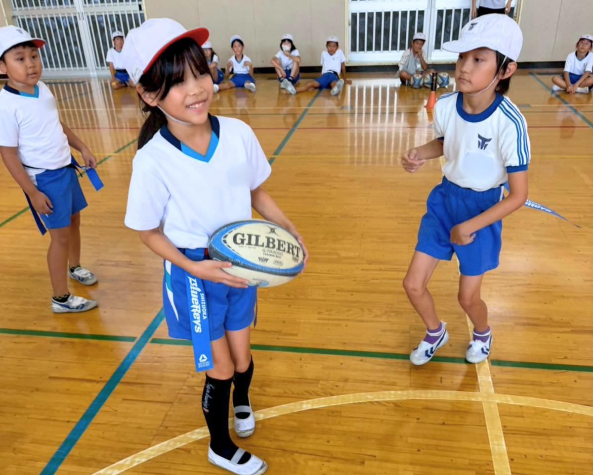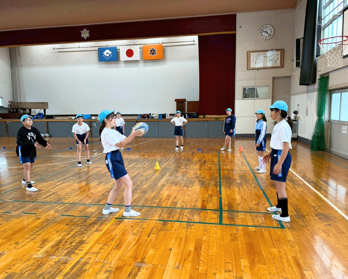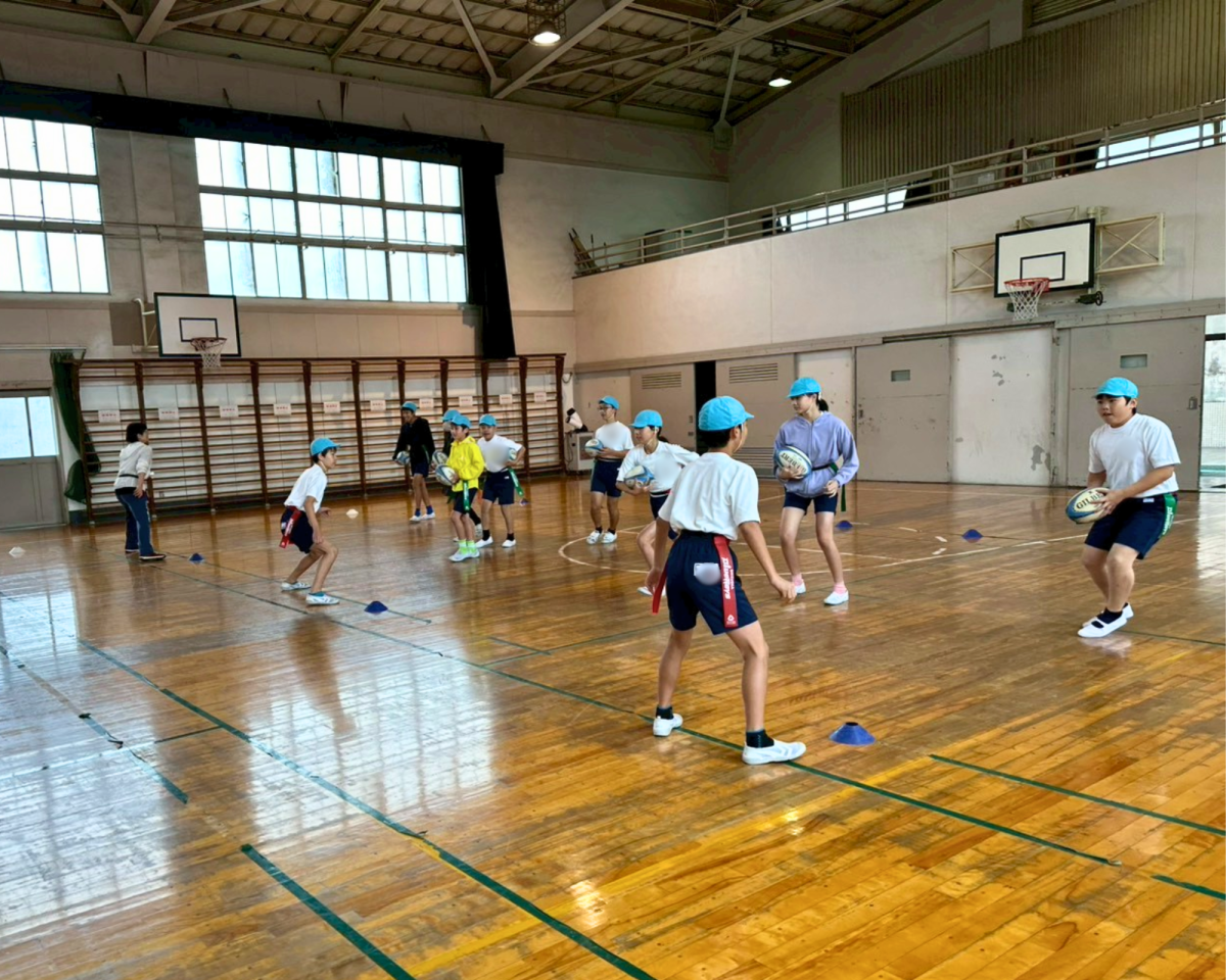 3年生対象にタグラグビー教室を実施しました!あいにくの天気でしたが、体育館で元気いっぱいタグラグビーを楽しみました!また会える日を楽しみにしています!
