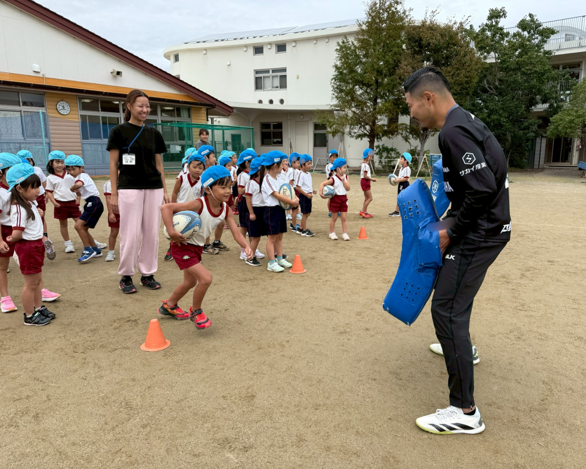 2025年10月21日(火)磐田市での普及活動として、育成普及担当の小池、伊東がラグビー体験を実施いたしました。