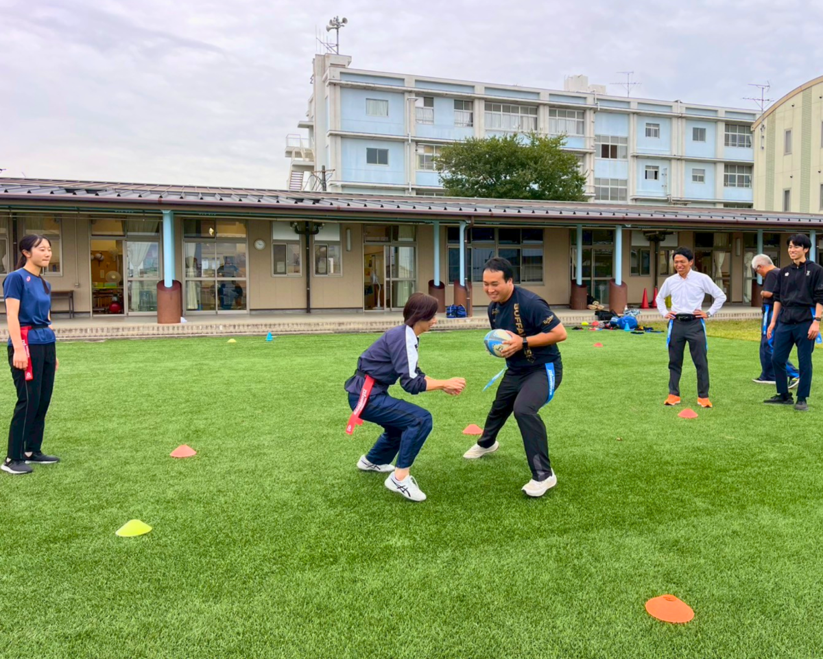 12月に予定しているタグラグビー教室を前に、教員の皆さん向けに講習会を実施しました。パスの練習やタグを使ったセッションを行った後、最後はタグラグビーの試合を実施!90分のプログラムでしたが、休憩することも忘れてしまうくらい最後まで楽しく笑顔でタグラグビーにチャレンジできました!12月が楽しみです!!ご参加いただいた皆さま、誠にありがとうございました!