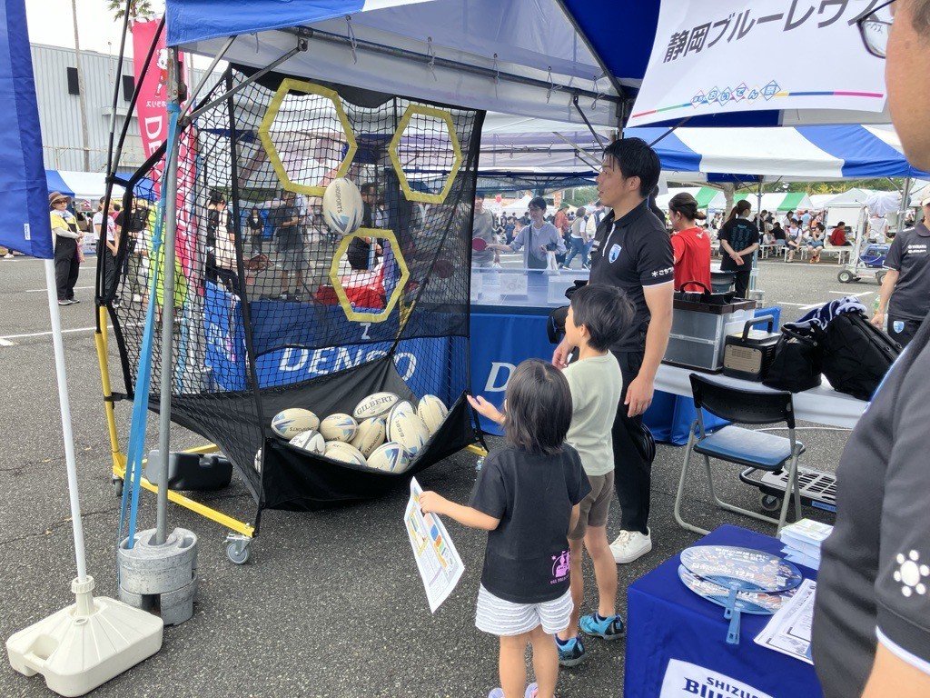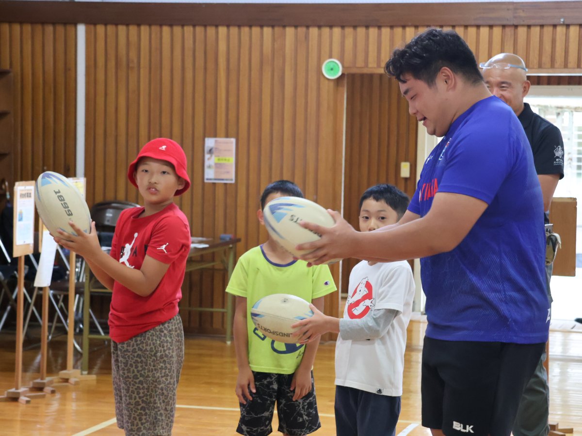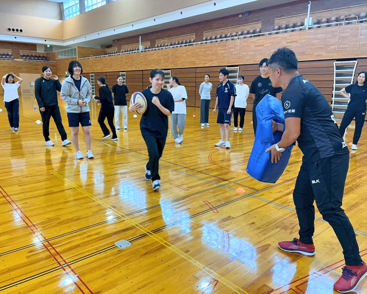 稲場選手と中山選手が参加し、ラグビー体験を実施しました