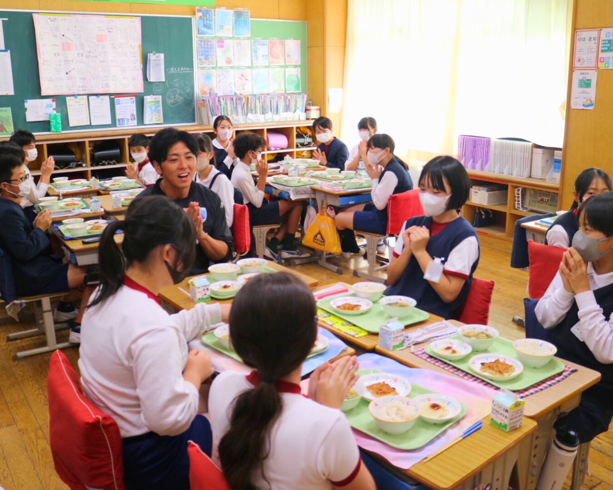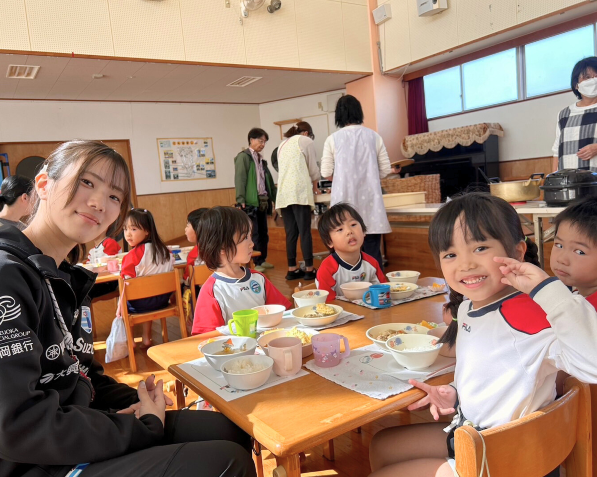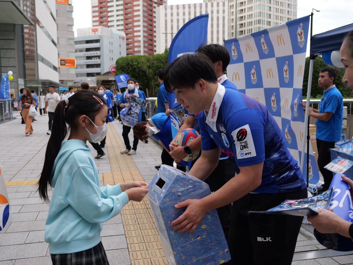 稲場選手と中山選手が参加し、ラグビー体験を実施しました