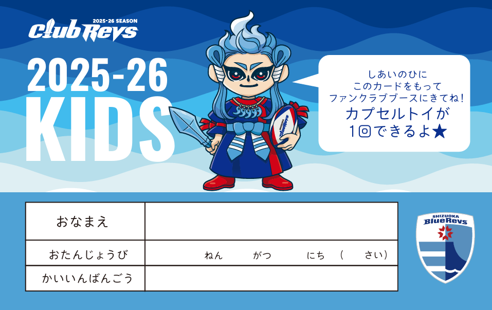 静岡ブルーレヴズ 公式ファンクラブCLUB REVSでは、今シーズンもキッズ会員・親子会員のお子様を対象に<CLUB REVS限定キッズガチャ>を実施いたします。