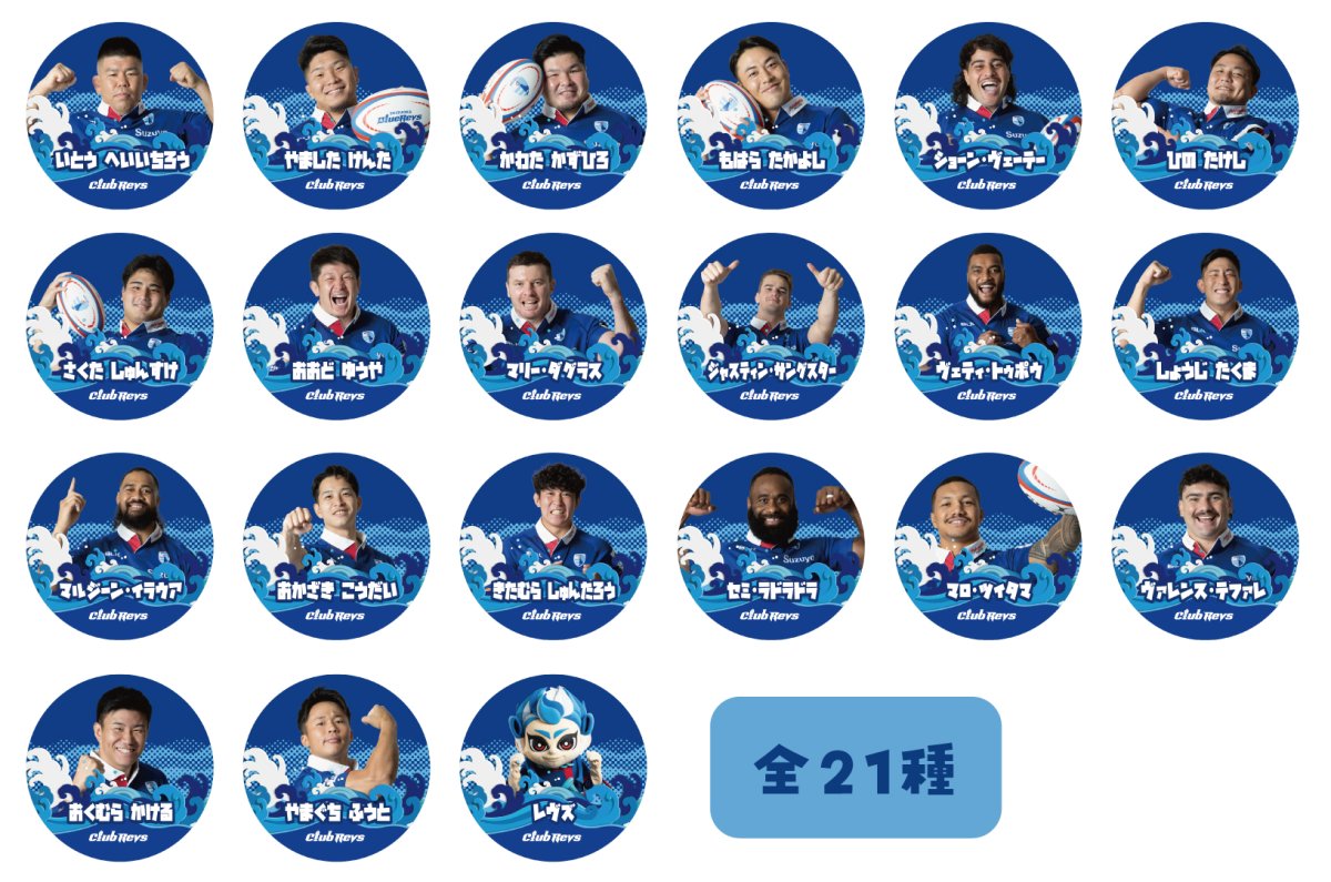 キッズ会員・親子会員のお子様なら無料。ホームゲームで毎試合1回まで参加いただけます。ここでしか手に入らない限定デザインの缶バッジがゲットできるチャンス!第2節から登場する第1弾では、FW・BK合わせて20選手とレヴズくんの全21種が登場します!