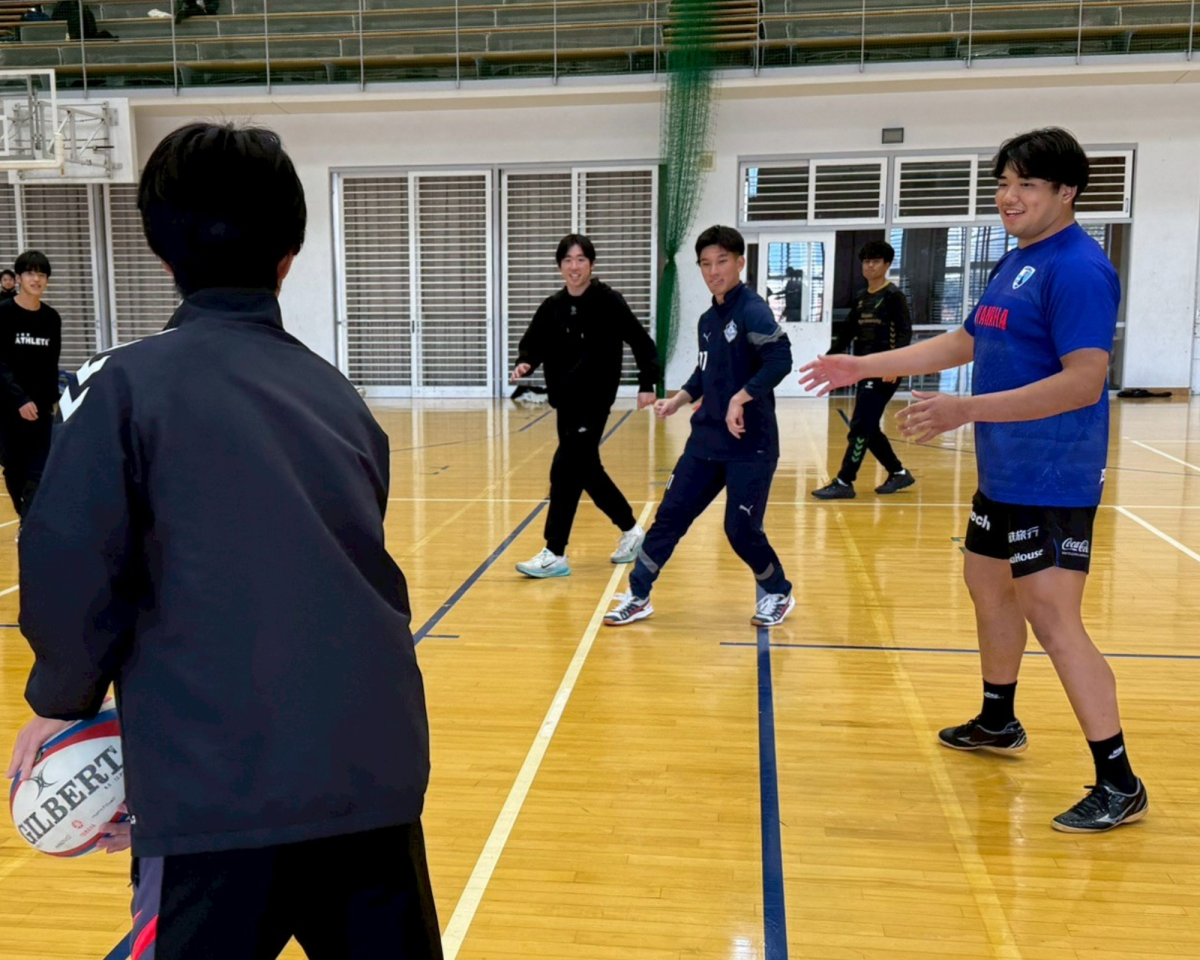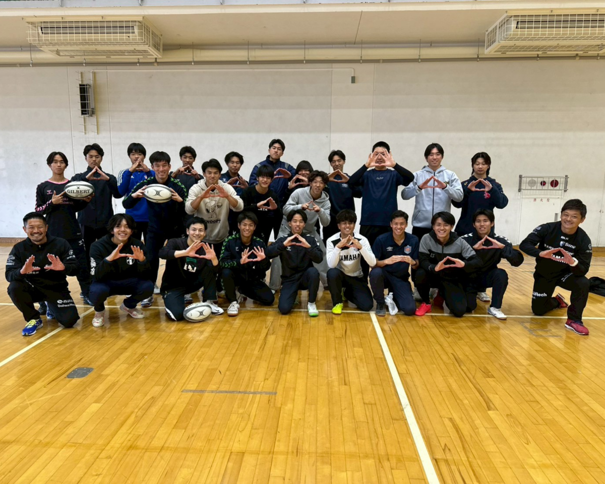 昨年度に引き続き、今年度も静岡産業大学の1年生へラグビー体験を授業として実施させていただきました。静岡産業大学との産学連携協定の一環としての活動となりますが、「ラグビー」に触れていただける貴重な機会となりました。普段体験することのないコンタクトやコンバージョンキックなどにもチャレンジし、大いに盛り上がりました。スポーツをしている学生も多く、さすがの身体能力でルール理解やラグビースキルにもすぐに順応してレベルの高いタグラグビーの試合も実施することができました。本授業の目的でもある「他競技から学ぶ」 ことで、自身のスキルアップに活かしていただけると嬉しいです。またスタジアムでお待ちしております。