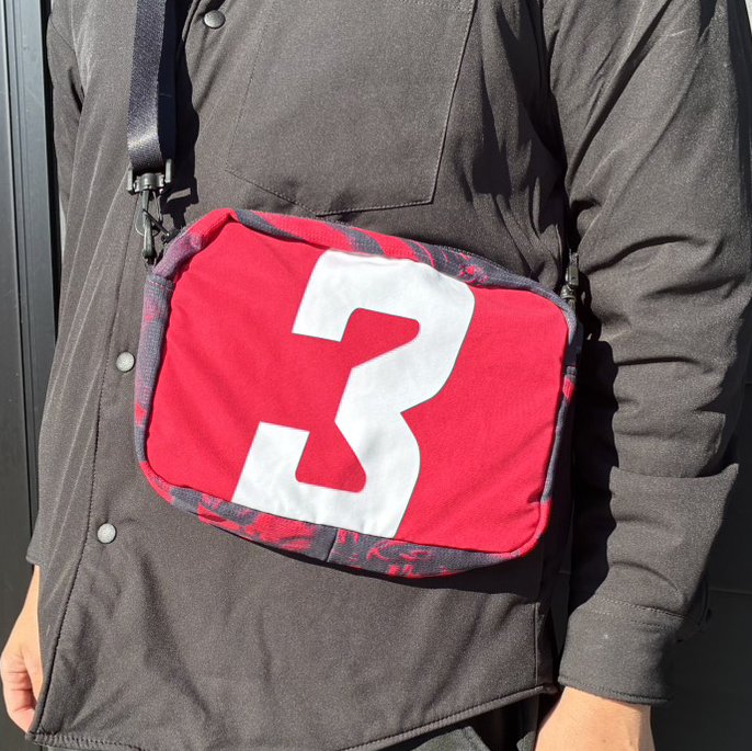 2024-25シーズン選手支給ジャージをアップサイクルしたスクエアショルダーバッグ。