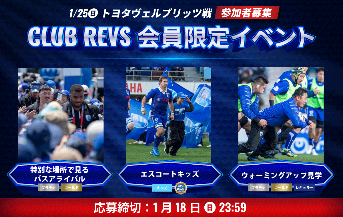 静岡ブルーレヴズでは、1月25日(日)のNTTジャパンラグビー リーグワン 2025-26 DIVISION 1 第6節 西静岡ヤクルト presents マッチデー トヨタヴェルブリッツ戦(ヤマハスタジアム/14:00キックオフ)にて、CLUB REVS 2025-26有料会員限定のホームゲームイベントを実施いたします。