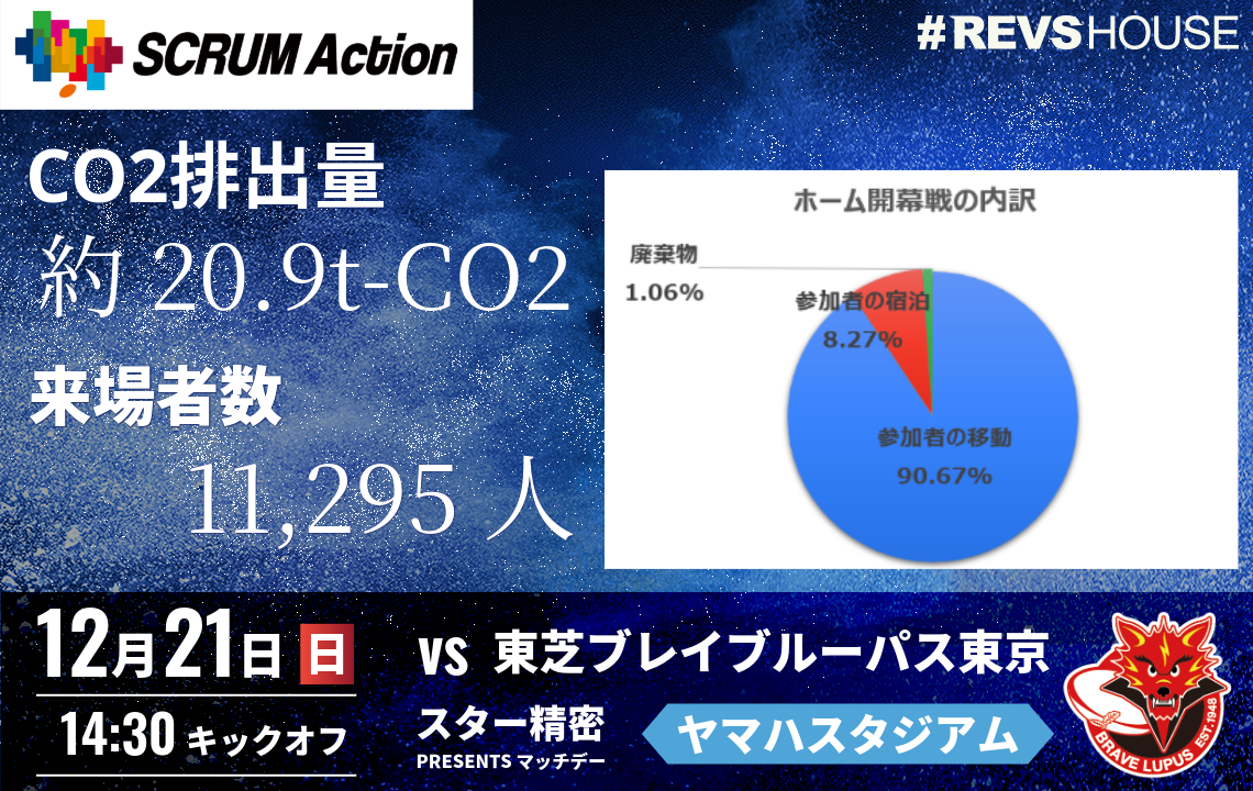 静岡ブルーレヴズ株式会社は、SCRUM Actionの重点テーマの1つに掲げる「Ecology」活動の一環として、12月21日(日)のNTTリーグワン2025-26 D1第2節のホームゲーム運営に係るCO₂をオフセットしましたので、以下の通りお知らせいたします。