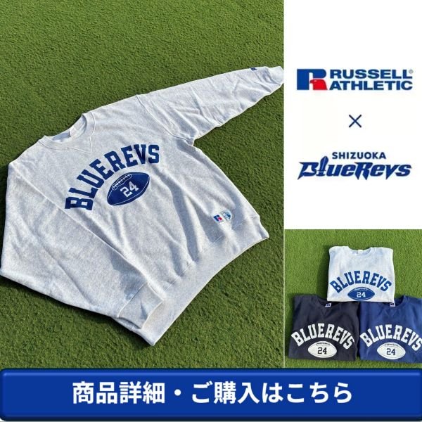 ラッセルアスレティックらしいしっかりとした素材感と、ブルーレヴズのスピリットを融合した特別アイテム。