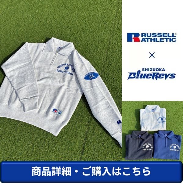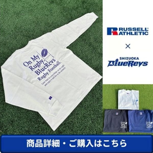 胸元には力強い「BLUEREVS」のロゴと、ラグビーボールに刻まれた“24”がレヴニスタの誇りを象徴。ラッセルらしいクラシックなデザインで、観戦でも日常でも映える一枚です。
