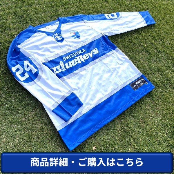人気のホッケーシャツ風ロングスリーブシャツが新しいデザインになって登場!静岡ブルーレヴズのブルー・ホワイト・グレーの3色を中心にデザインされたクールな1着に仕上がってます。