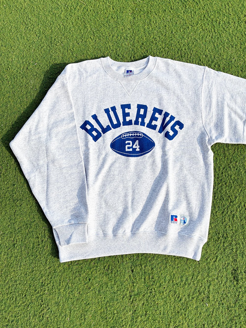 クラシックなアメリカンスポーツウェアの雰囲気に、静岡ブルーレヴズをモチーフにカレッジテイストで制作したグラフィックをプリントし、日常にチームらしさを添える一枚に仕上げました。