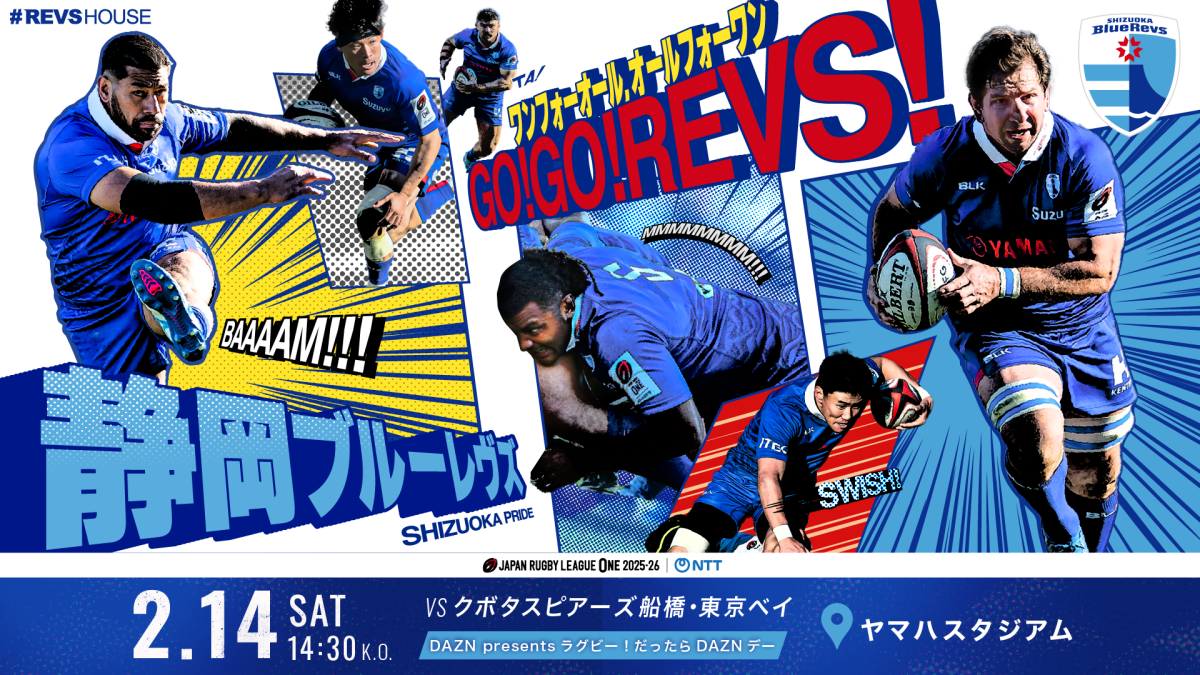 静岡ブルーレヴズでは、2月14日(土)のNTTリーグワン 2025-26 D1第8節のクボタスピアーズ船橋・東京ベイ戦において、ラグビー芸人しんやさんと、ヤジマリー。さんとみやさんのコンビ<スカチャン>さんによるステージイベントを実施いたします。軽快なトークとラグビー愛あふれるステージで、試合前の会場を盛り上げます。ここでしか味わえない特別イベントを、ぜひスタジアムでお楽しみください。