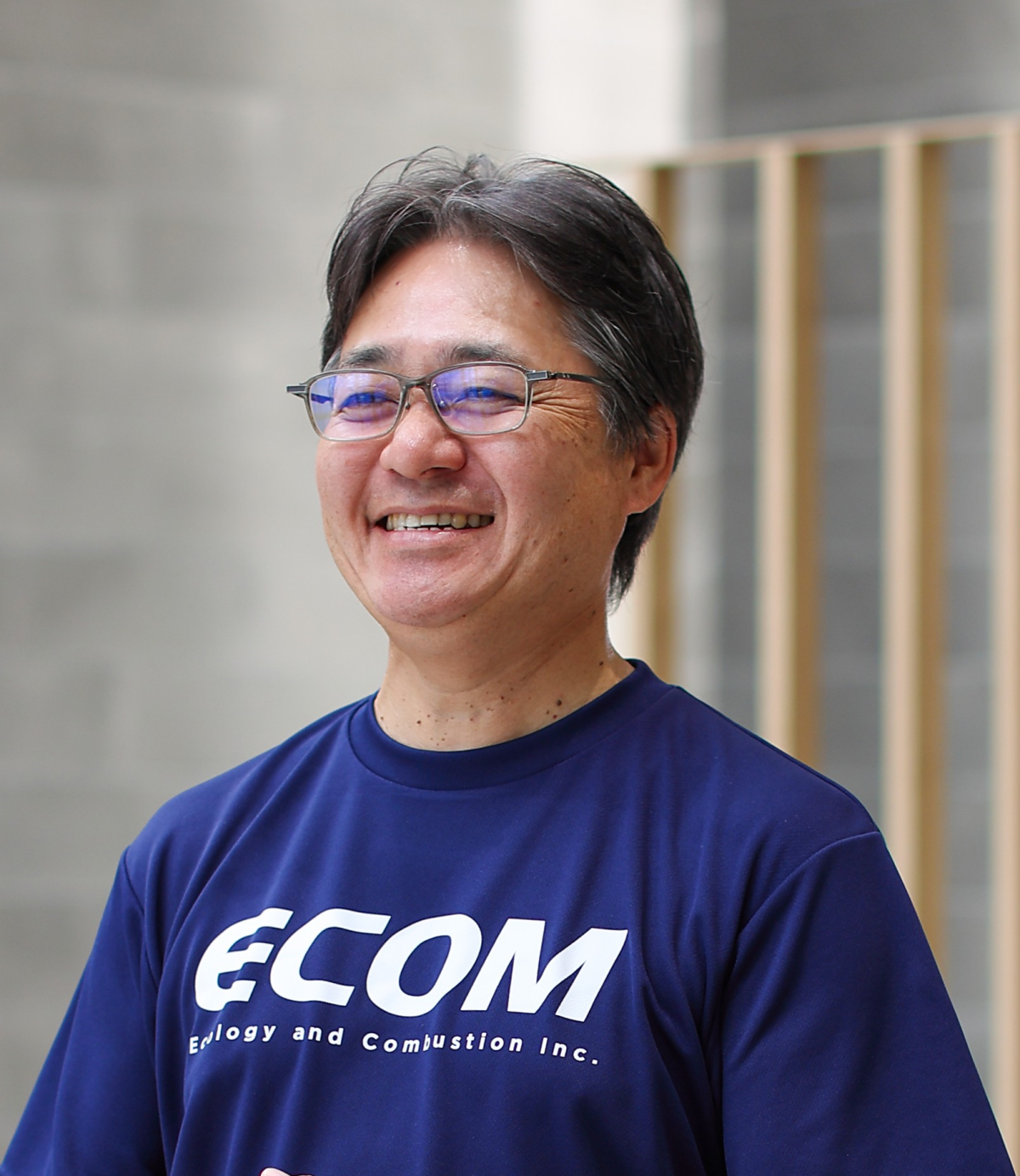 社名のECOM(エコム)はEcology(環境)and Combustion(燃焼)の造語で、「燃焼技術で環境に配慮した機械設備を製作する」を意味する。