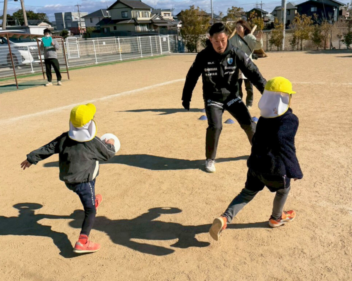 2026年1月28日(水)磐田市での普及活動として、育成普及担当の藤井、小池がラグビー体験を実施いたしました。