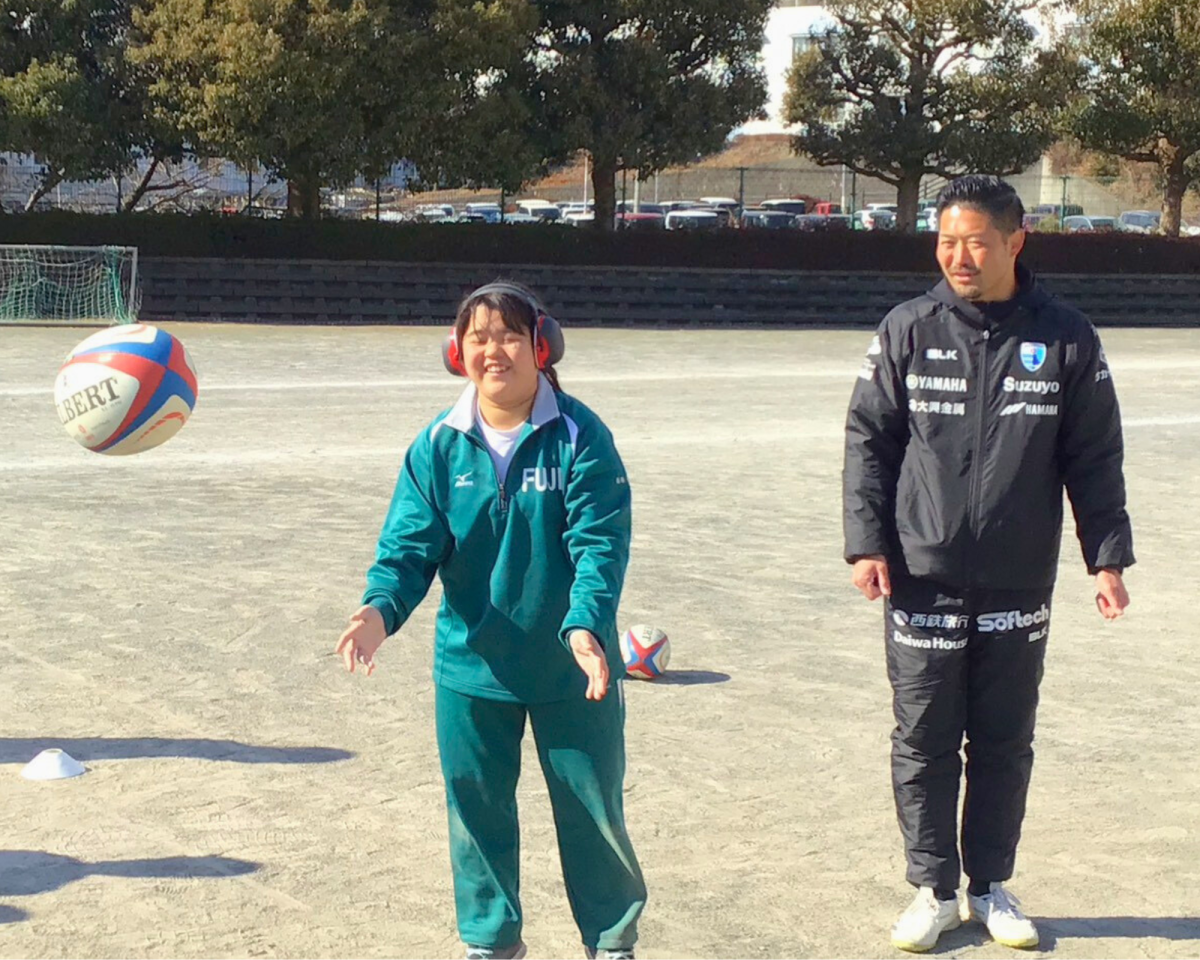 新たにラグビーを取り入れた富士特別支援学校で色んなスキルにチャレンジ!!パス!キック!タックル!みんな上手くできたね!!みんなと過ごした楽しい時間は忘れないぜ!