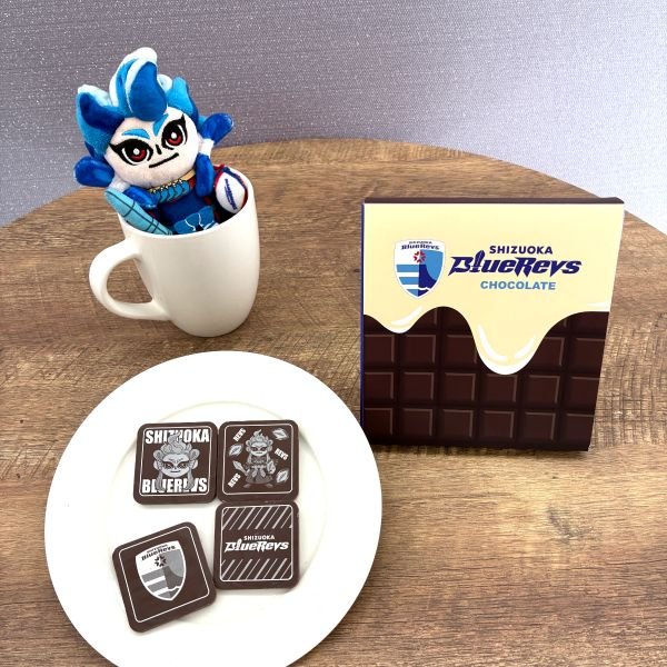 ロゴ、エンブレム、レヴズくんの可愛いプリントが入ったオリジナルチョコ。