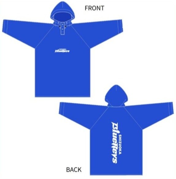 背中には、ひと目でブルーレヴズと分かる象徴的なビッグロゴを大胆に配置。スタンドをブルーに染め、雨の日でも一体感ある応援を演出します。