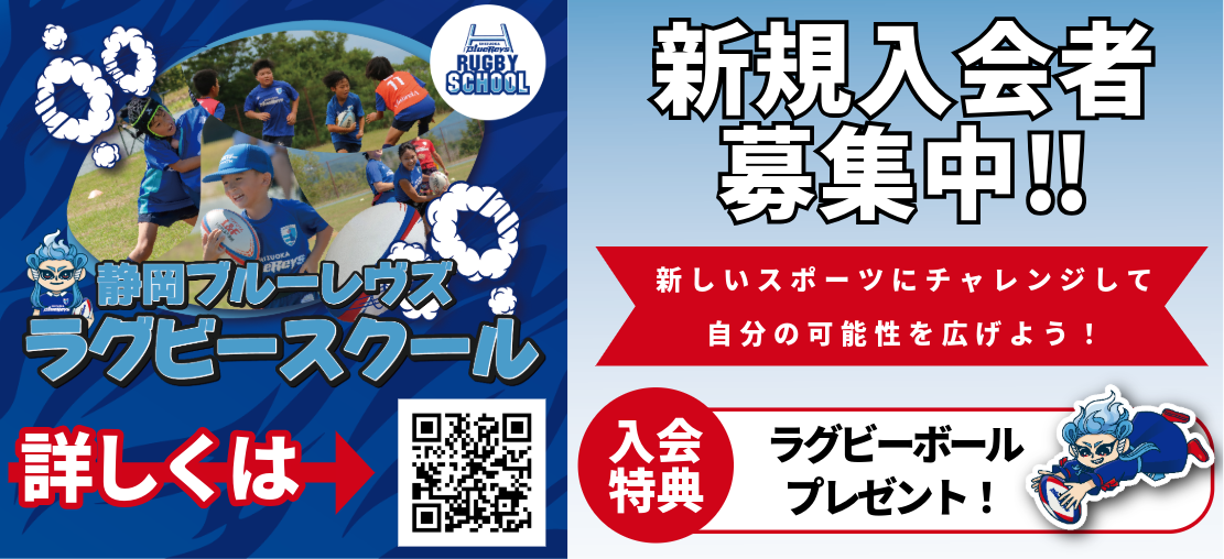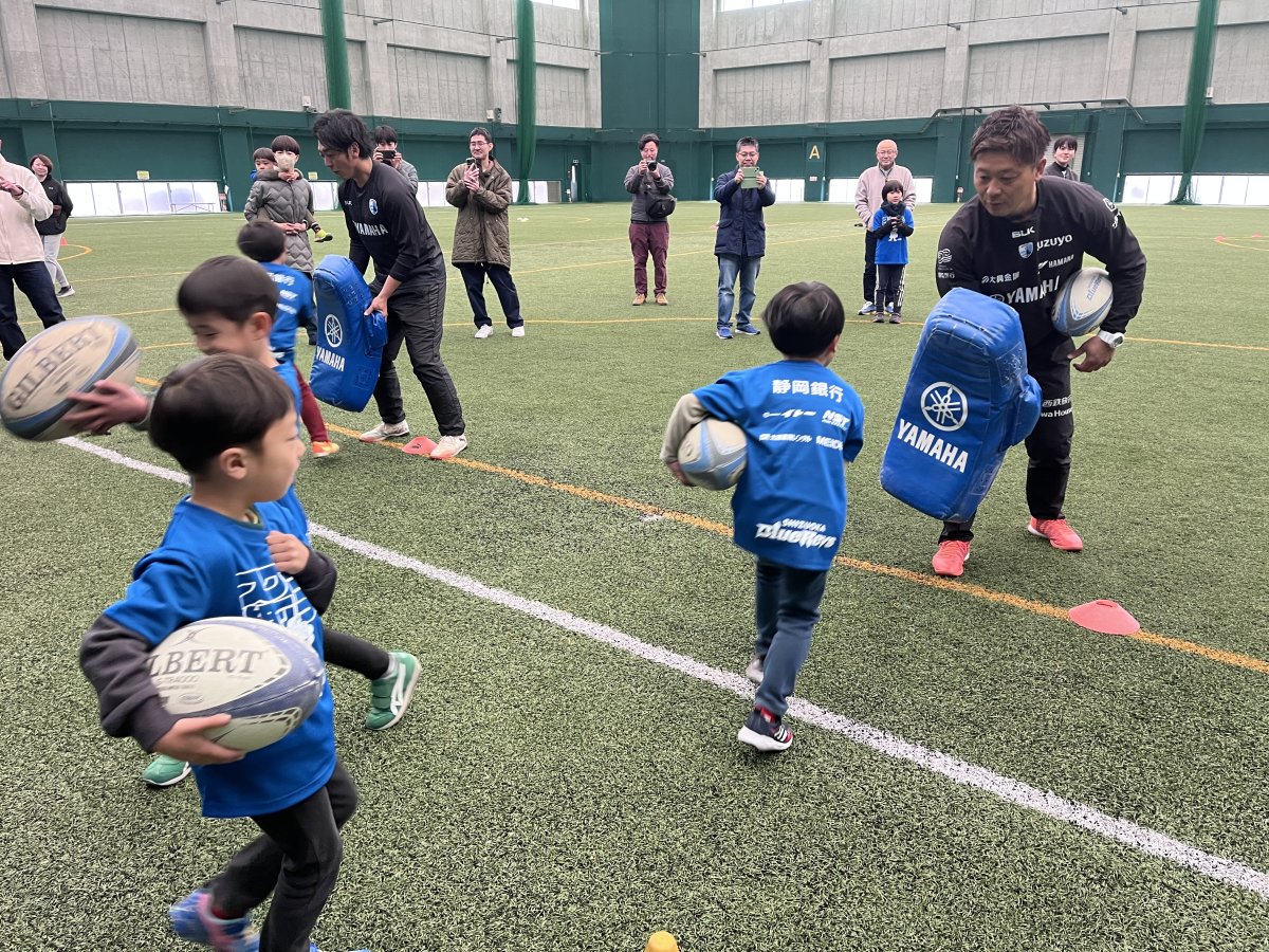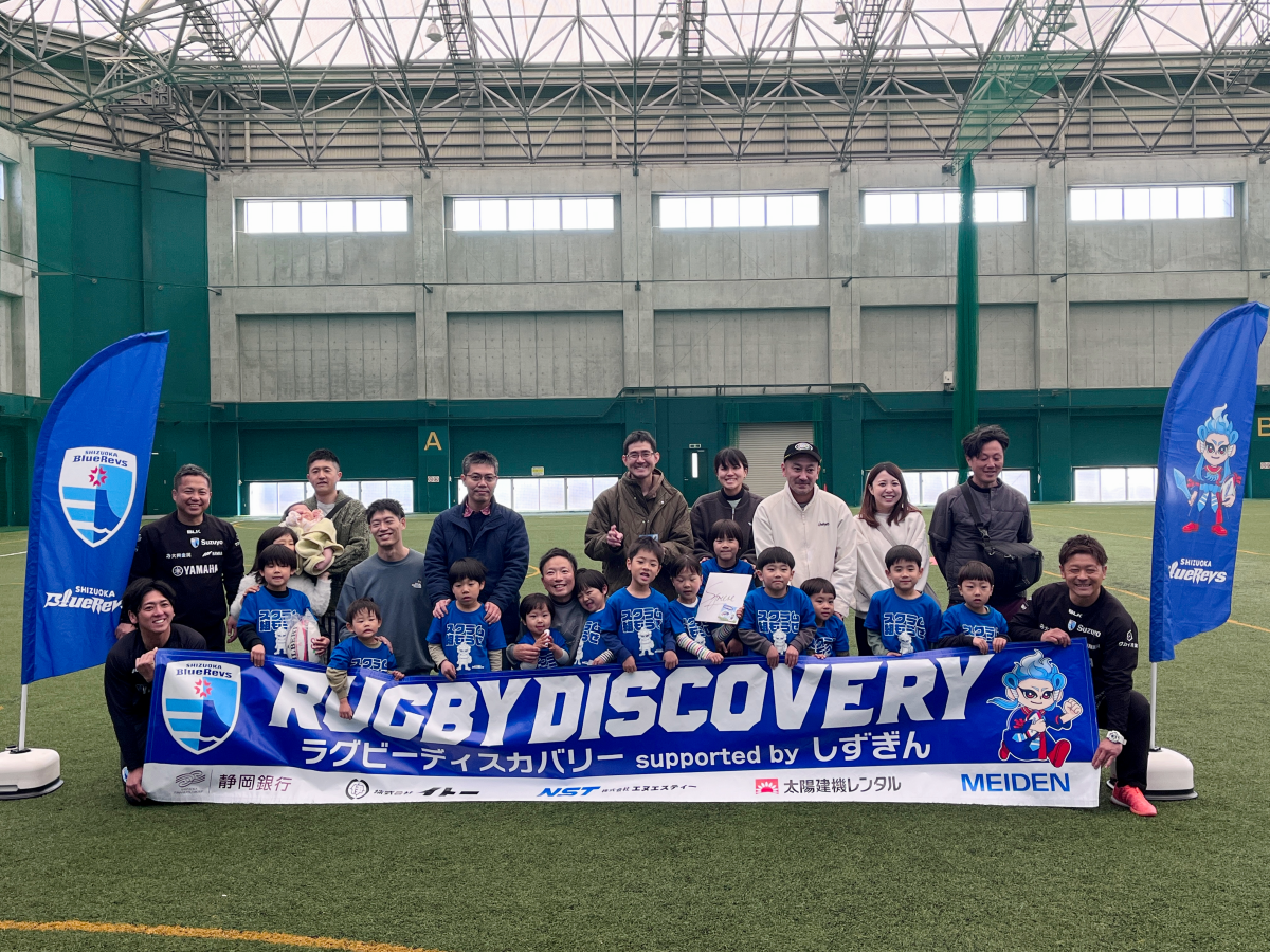 静岡ブルーレヴズでは、2月22日(日)にラグビー体験イベント ラグビーディスカバリー supported by しずぎん を静岡市にて開催しました。当日は、育成・普及スタッフ3名(田井中、小池、伊東)が指導を担当し、午前の部(未就学児)、午後の部(小学1年~3年生)の二部制にて実施。参加した子どもたちはラグビーディスカバリー オリジナルTシャツを身に纏い、はじめてのラグビー体験にチャレンジしました。