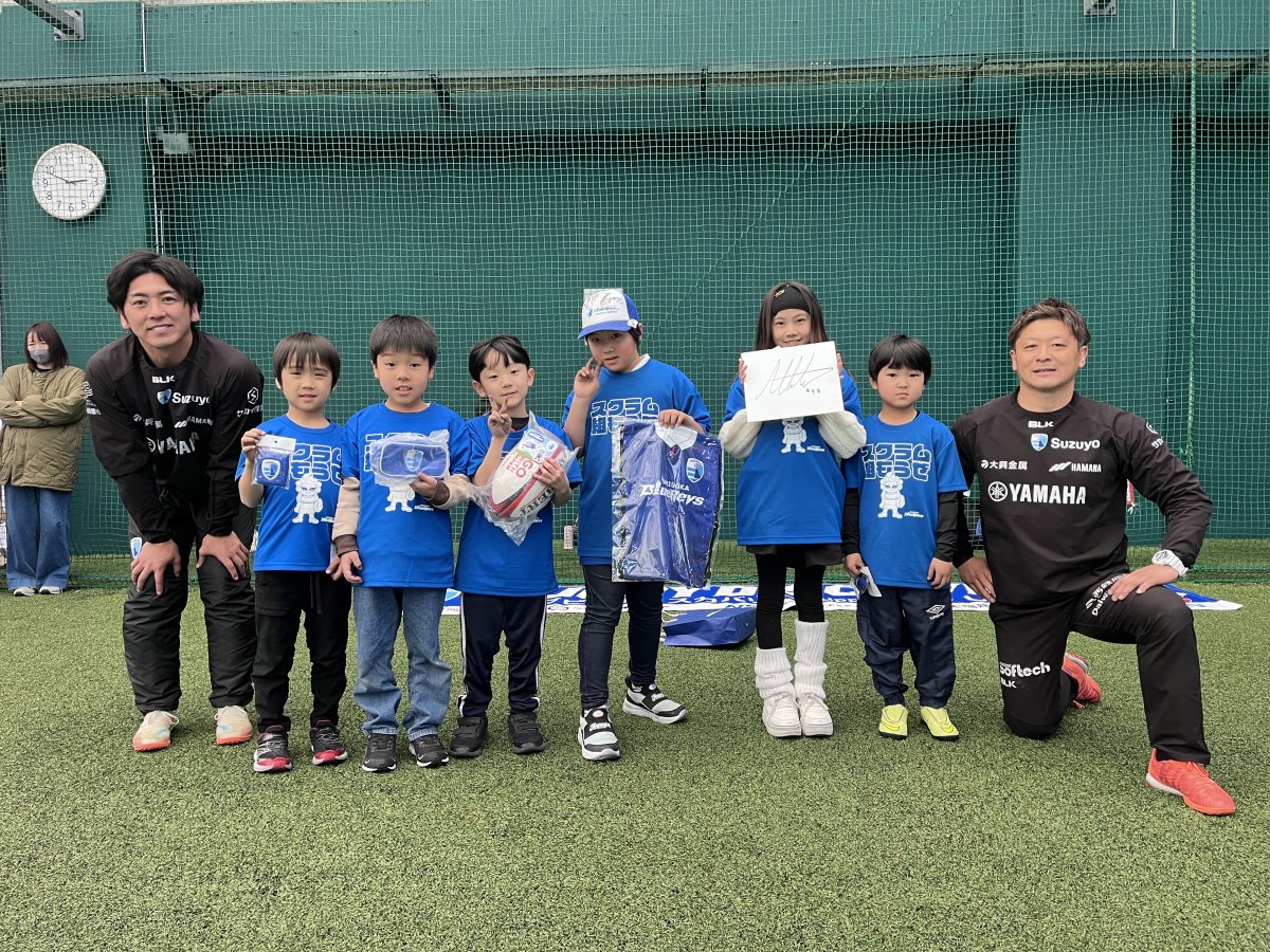 午前・午後ともに最後はタックルにも挑戦するなど、コーチ陣の指導の下、子どもたちの笑顔が終始溢れる時間となりました。今回のラグビーの体験機会を通して、ラグビーやスポーツの楽しさや魅力の発見に繋がってくれたら嬉しいです。イベントの最後には、静岡ブルーレヴズオリジナルグッズや選手のサイン色紙が当たる抽選会も実施し、大いに盛り上がりました。静岡ブルーレヴズでは、今後も幅広い世代にラグビーの魅力を届けるイベントを開催してまいります。