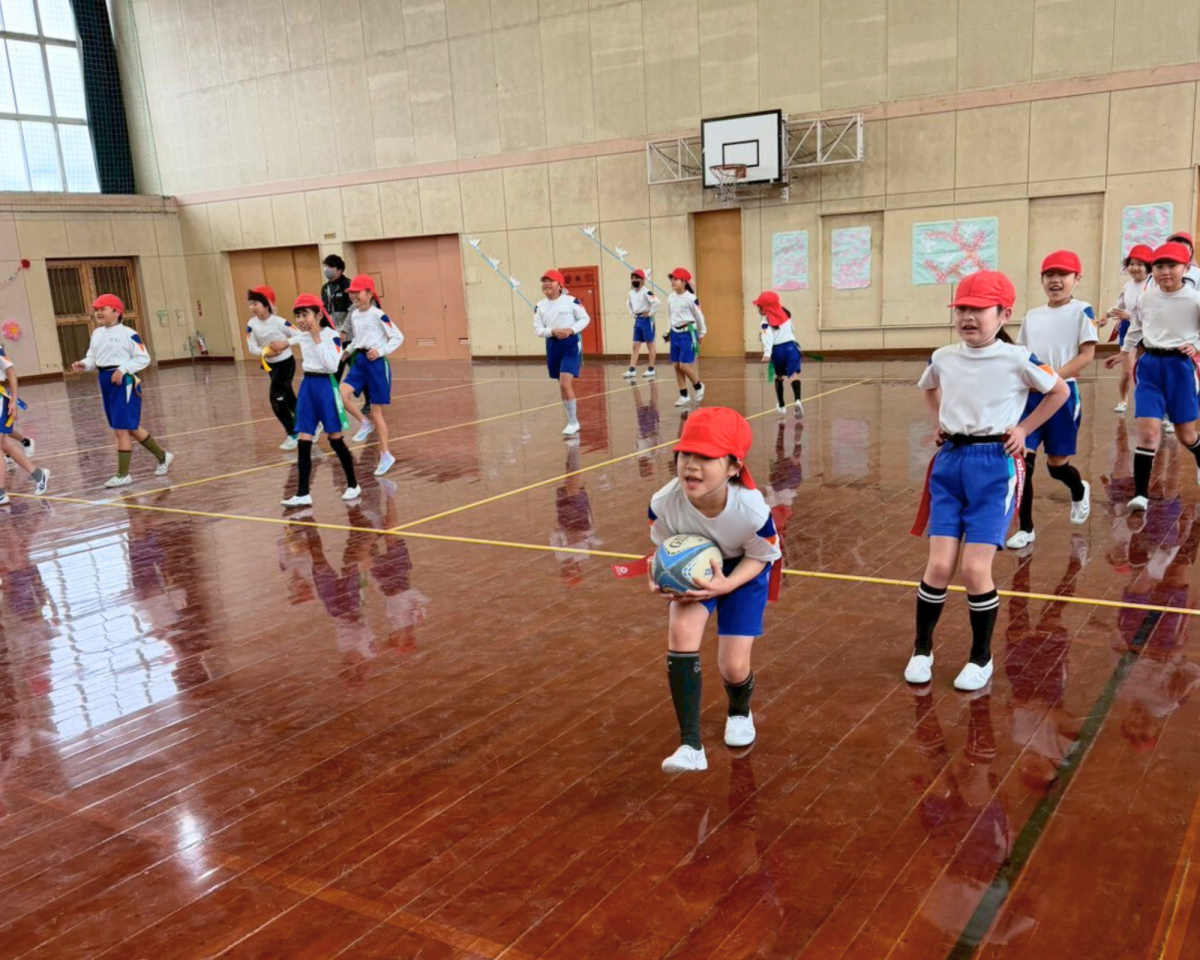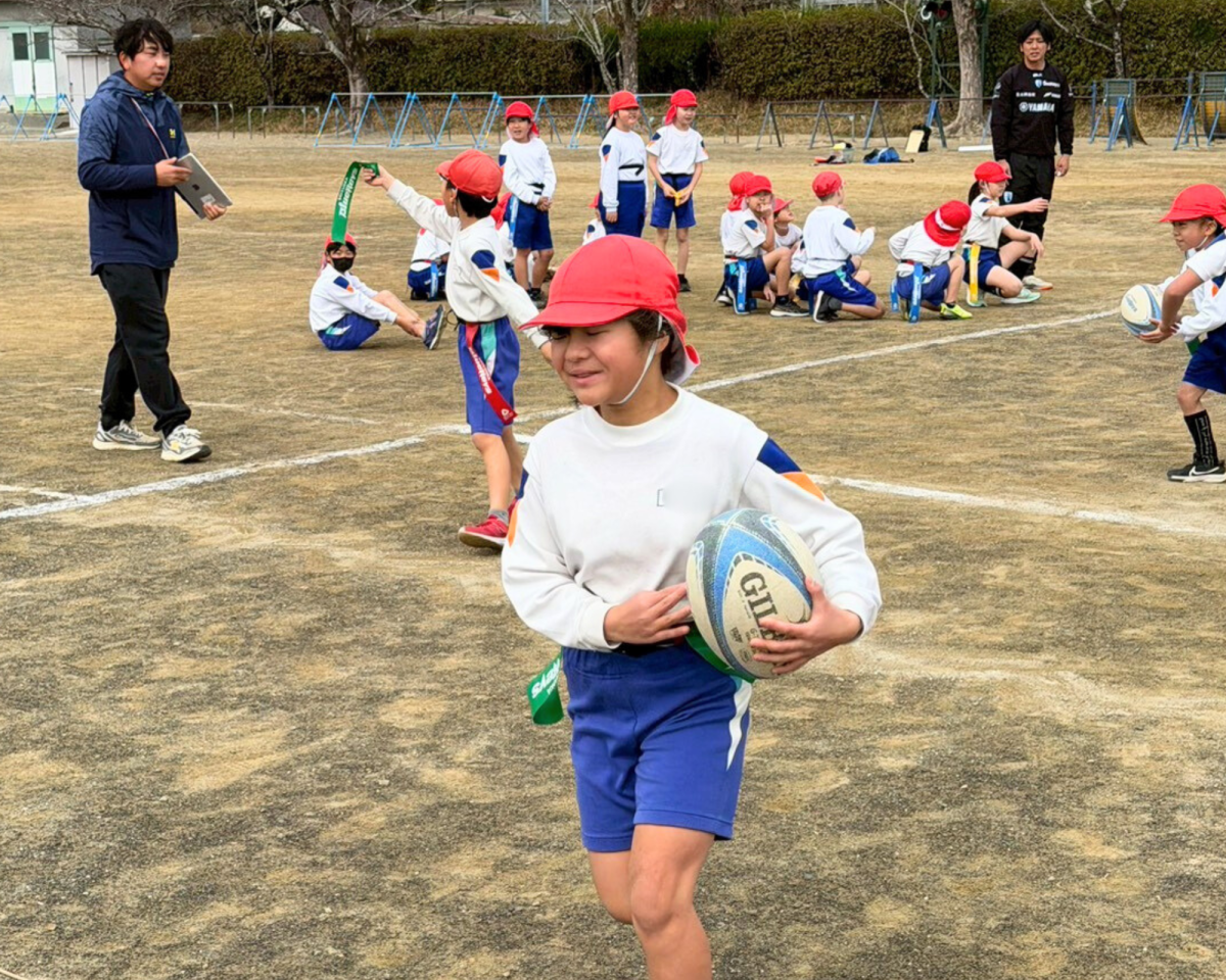 2026年2月25日(水)掛川市での普及活動として、育成普及担当の小池、伊東がタグラグビー教室を実施いたしました。