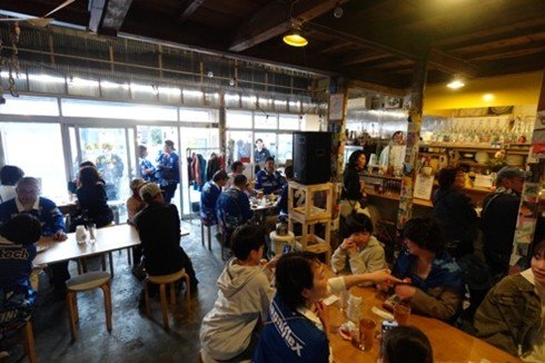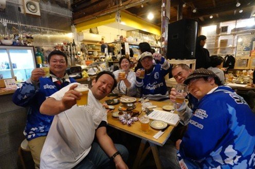 ビール等のお会計1,000円ごとに選手サイン入りレプリカジャージ等が当たる抽選会に1回参加できる特典を付けることで、より多くの方々にご来店いただけるよう企画。開店から多くのお客様がお越しになられ、開店15分で満席になるなど、イベント終了まで計100名以上の皆様にご来店いただきました。お席の都合上、相席をお願いすることもありましたが、レヴニスタ同士の交流が生まれ、これまでにない賑わいを生むことができました。