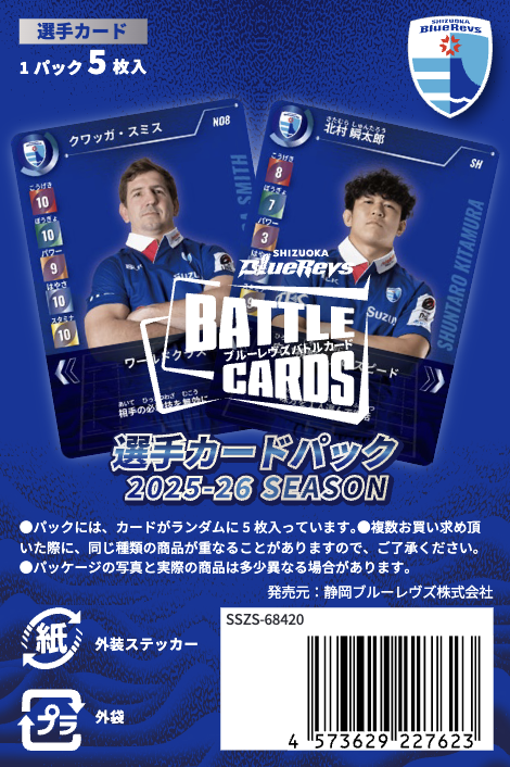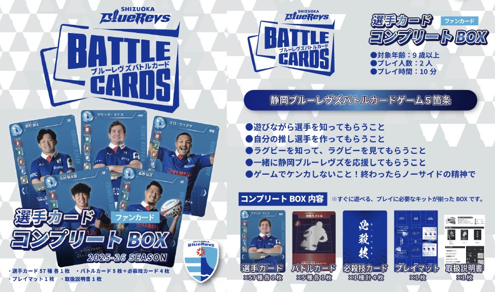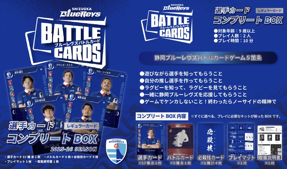 静岡ブルーレヴズはこの度、チーム監修のもと、選手をモチーフにしたカードゲーム[2025-26 ブルーレヴズ選手バトルカード]を発売いたします。