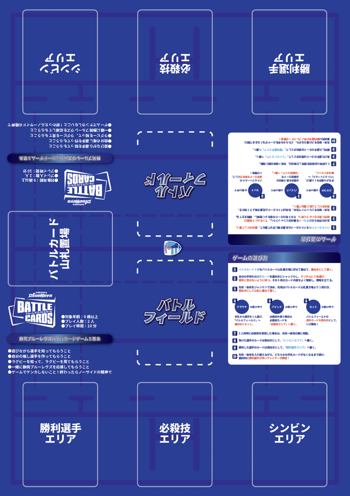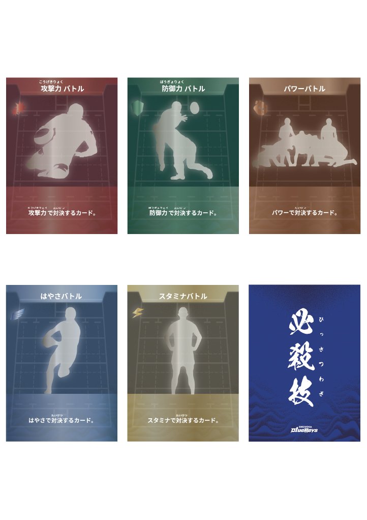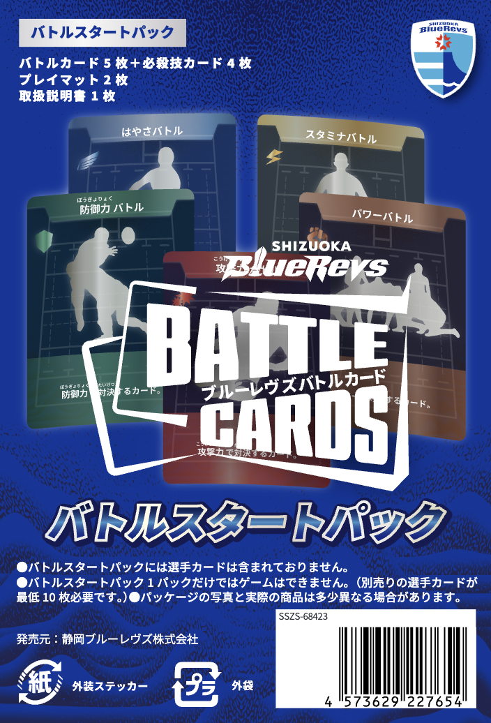 本商品は、静岡ブルーレヴズの選手たちがカードとなり、それぞれの能力や特徴を活かして対戦を楽しむことができる、カードゲーム型のオフィシャルグッズです。ファンの皆様はカードを集めてチームを編成し、戦略を考えながら対戦することで、ラグビーや選手の魅力をゲームとして体験することができる、ラグビー界では初※となる「選手で戦うカードゲーム型のオフィシャルグッズ」です。(※当社調べ)