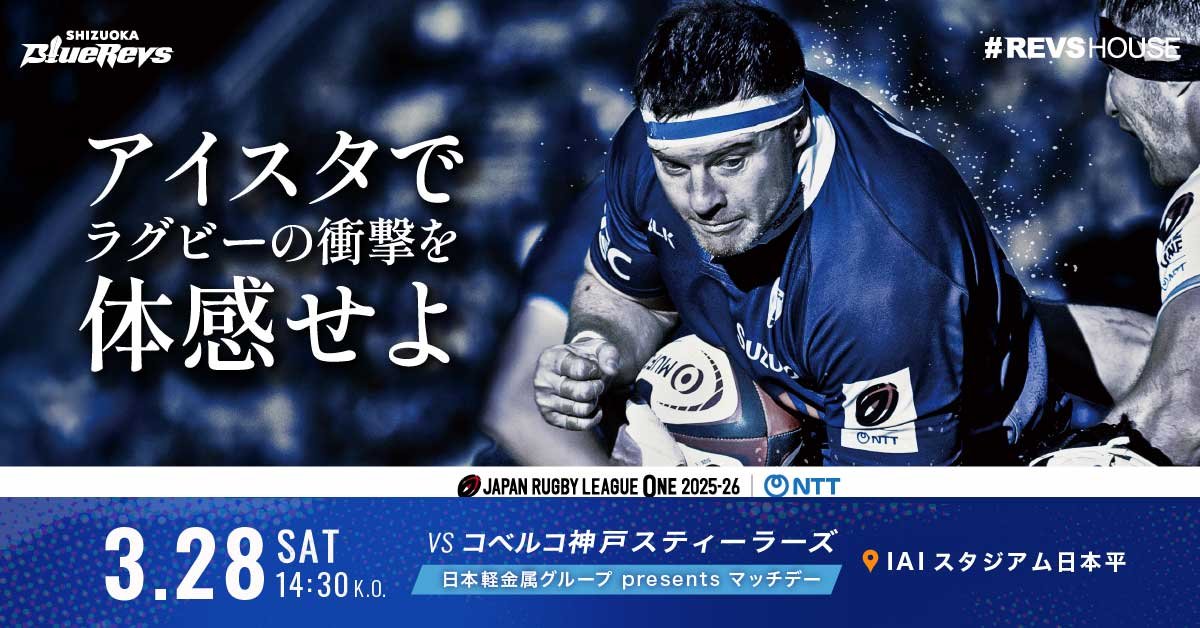3月28日(土)のNTTジャパンラグビー リーグワン 2025-26 D1 第13節 日本軽金属グループ presents マッチデー コベルコ神戸スティーラーズ戦(IAIスタジアム日本平/14:30キックオフ)のCLUB REVS(ファンクラブ)ブース情報をお知らせいたします。