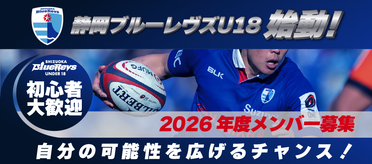 2026年4月より、高校年代を対象としたユースクラブ≪静岡ブルーレヴズU18≫がいよいよ始動します。静岡の地に根ざしたこの新たな挑戦にあたり、静岡ブルーレヴズU18の第1期生メンバーの募集を開始いたします。