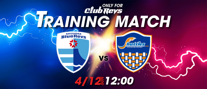 静岡ブルーレヴズでは、4月12日(日)にヤマハ大久保グラウンドで豊田自動織機シャトルズ愛知とトレーニングマッチを行います。