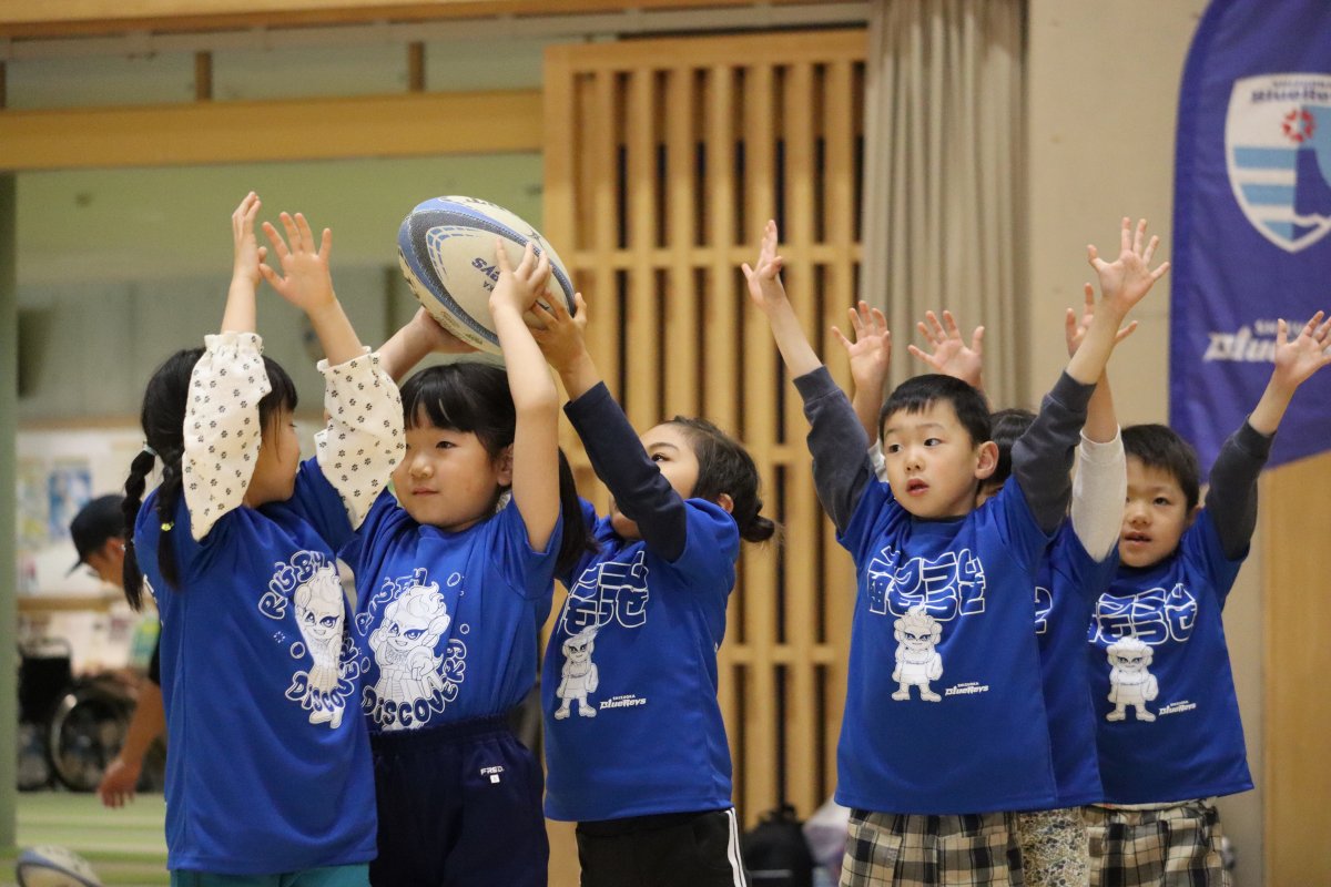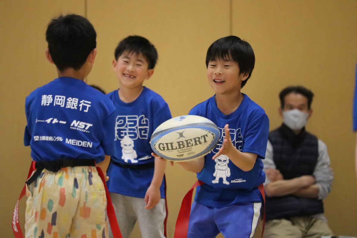 第1部・第2部ともに、それぞれの年齢に合わせた内容で楽しく体を動かしながら、ラグビーの魅力に触れることができました。仲間と協力する場面や、積極的にチャレンジする姿が多く見られ、会場は終始笑顔と活気にあふれていました。さらに静岡ブルーレヴズオリジナルグッズやサイン色紙が当たる抽選会も行い、最後まで楽しい雰囲気に包まれました。