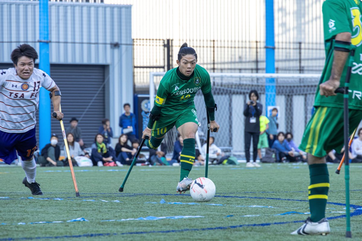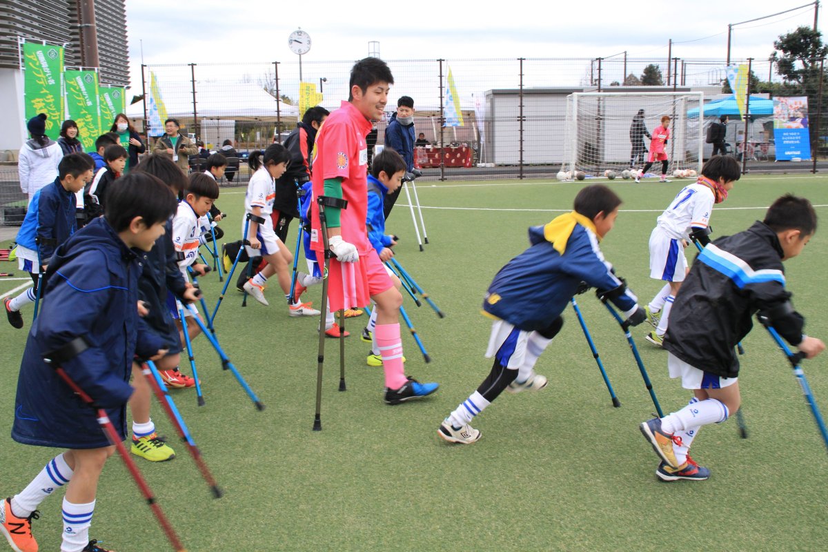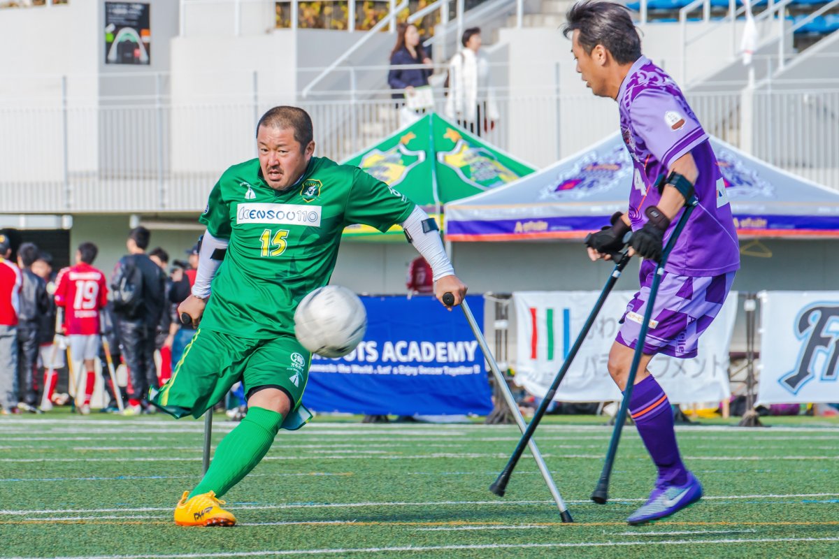アンプティサッカーは上肢・下肢切断障がい者が行うサッカー競技です。選手はプレー中、義足や義手を使いません。フィールドプレイヤーは日常生活やリハビリで使うクラッチ(杖)でプレーをします。プレーの激しさは一般のサッカーと変わらないため、スピード・迫力のあるプレーを見ることができます。
