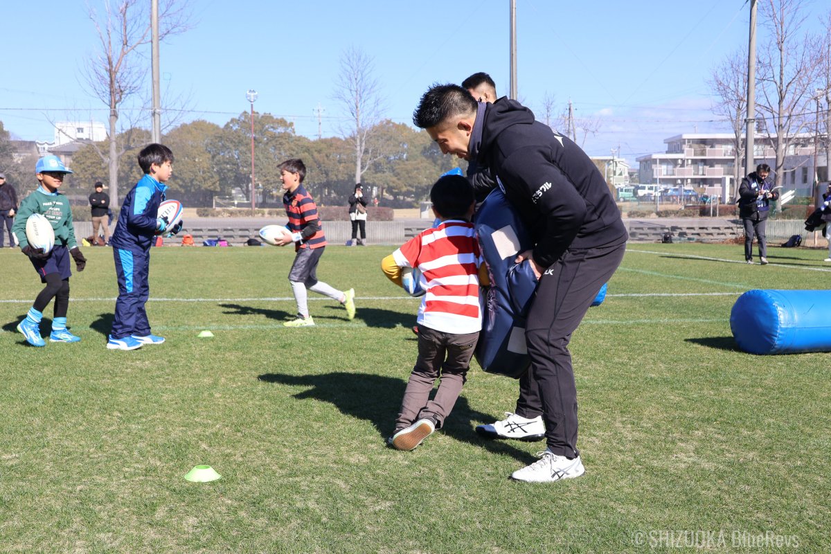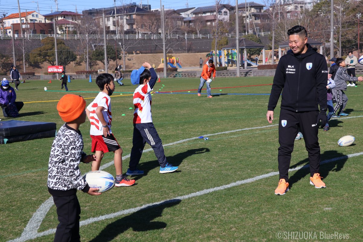 静岡ブルーレヴズの選手やOBがラグビーを教えてくれます!ラグビーをやったことがなくても大丈夫。ラグビーボールを持って、まずはカラダを動かしてみましょう!