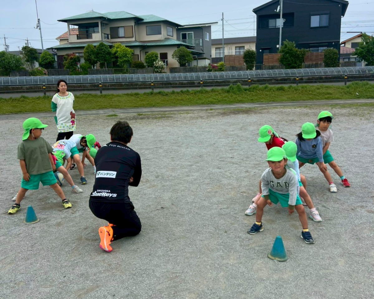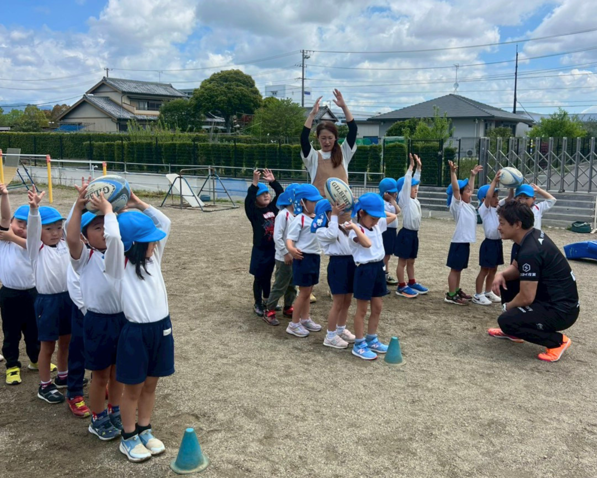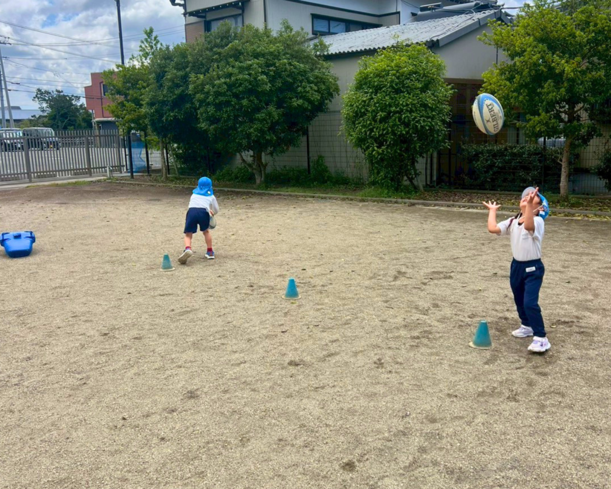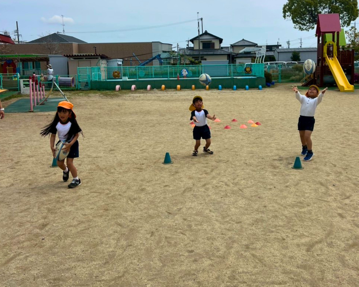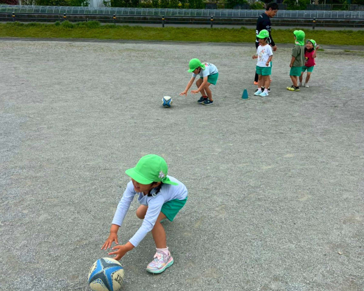 青空の下、元気いっぱいラグビー体験をおこないました🏉みんなで協力してボールを繋いだり、コンタクト体験などの初めてのことにも積極的にチャレンジしてすることができました👍