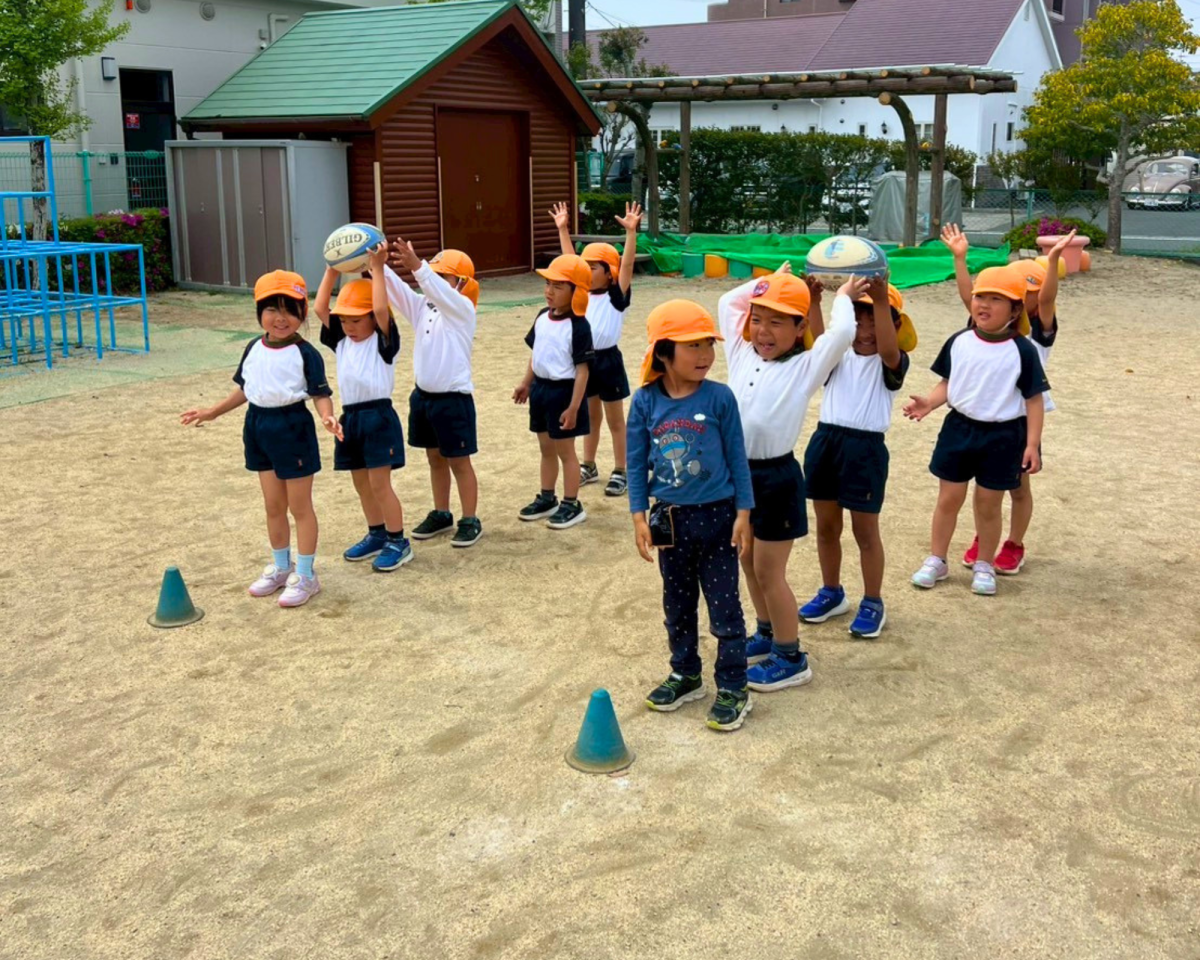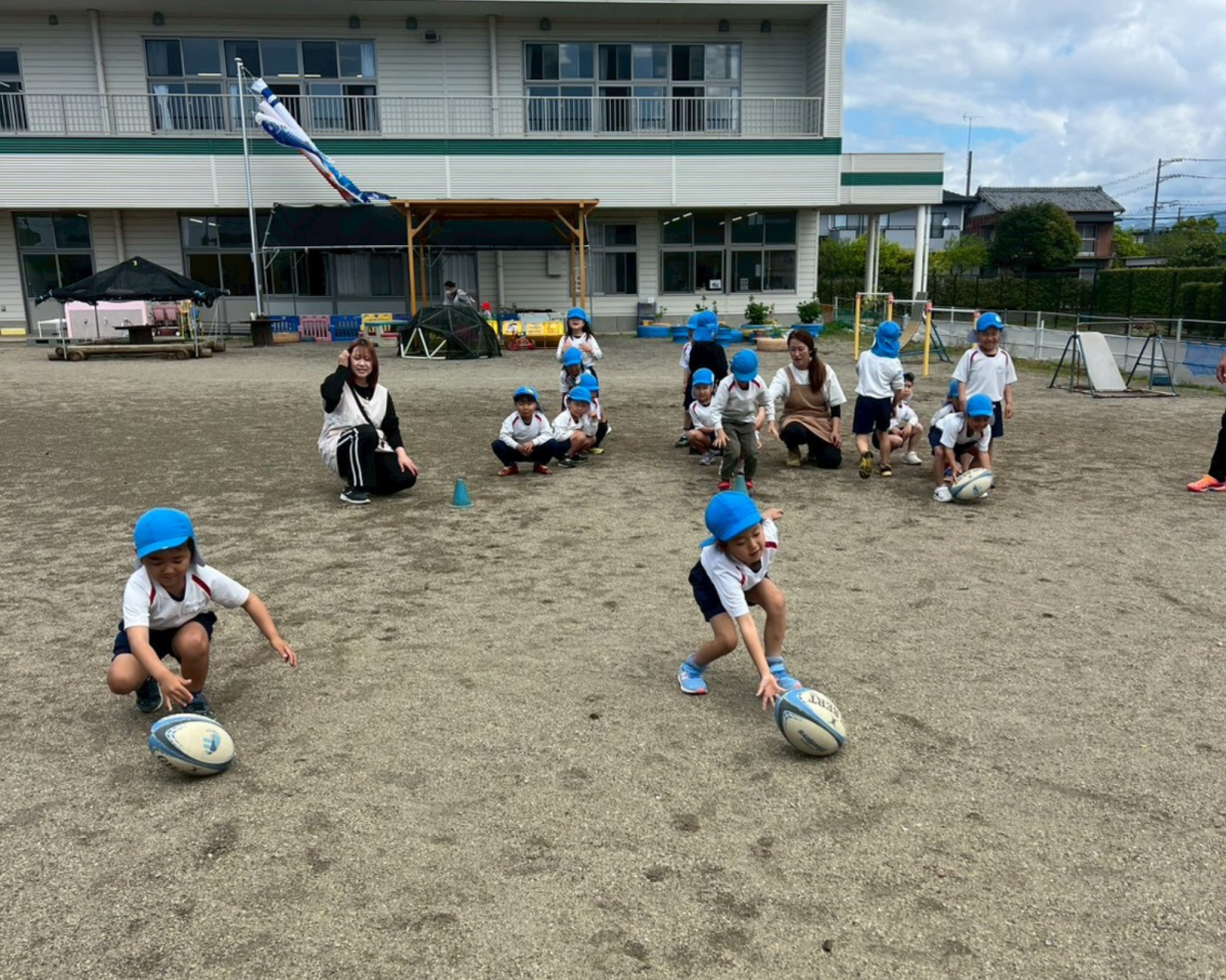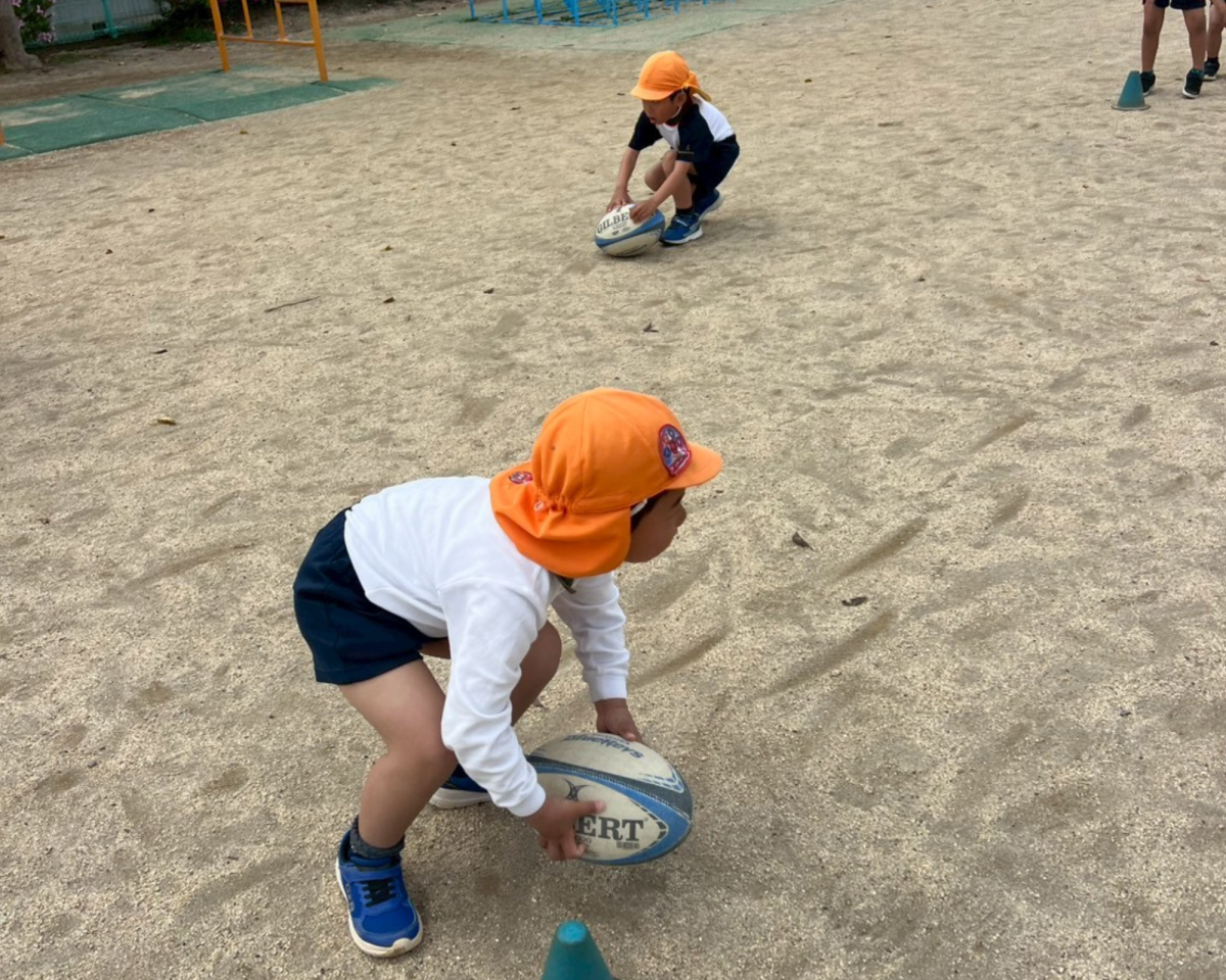 初めてのラグビー体験🏉元気いっぱい走ったり、みんなでボールを繋いだり、たくさんのことにチャレンジしました❗️お友達へのありがとうの言葉やチャレンジする姿勢とても素晴らしかったです👍