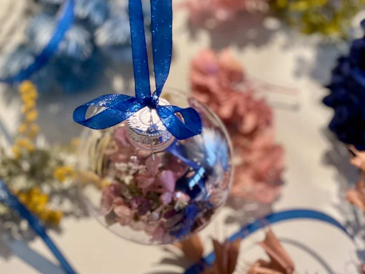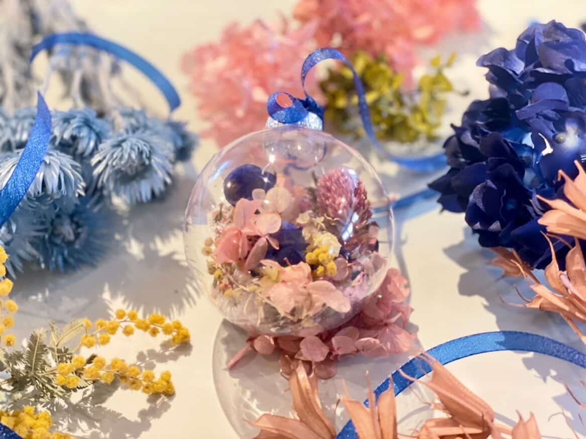 ボール型のボトルにご自身で選んだドライフラワーを自由に詰めて、世界に一つのマイリウムづくりをお楽しみいただけます。翌日は母の日。日頃の感謝を込めて、お母さんへのプレゼントにもぴったりな、特別なマイリウムづくりをお楽しみください。