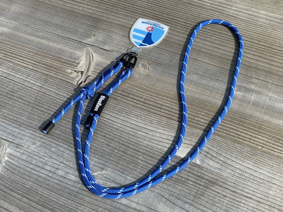 オフィシャルグッズにアウトドアロープストラップが登場。クライミングロープを使用した耐久性の高いストラップで、カジュアルなタウンユースやキャンプ、バーベキューなどのアウトドアにも活躍!携帯を斜めがけして手ぶらにスタジアムも応援も楽しめるので、試合観戦時にもおすすめです。ストラップを引っ張ることで、お好みの長さに調節する事が可能です。